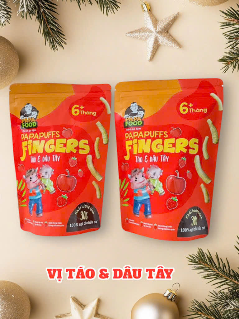 1. Tên sản phẩm: Bánh ăn dặm PAPAPUFFS FINGERS - BÍ ĐỎ VÀ KHOAI LANG TÍM . 2. Thành phần: Được sản xuất từ 100% Nguyên Liệu Hữu Cơ - Gồm gạo lứt hữu cơ,