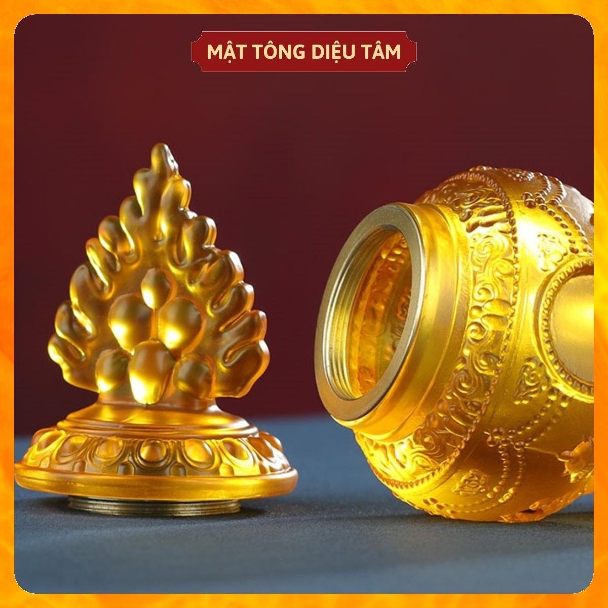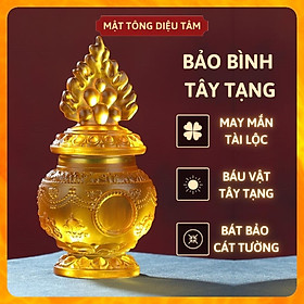 Thông tin sản phẩm: Bảo bình lưu ly tây tạng mật tông Diệu Tâm Chất liệu : Giả lưu ly Màu sắc: Vàng hổ phách Kích thước: 8cm x 17cm Phong cách : Phật giáo