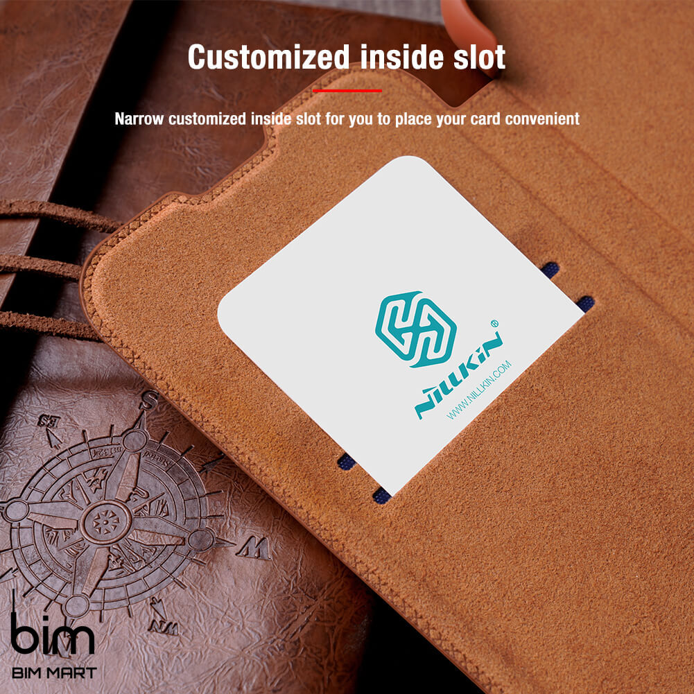 Bao da dành cho iPhone 13 Pro Max hàng chính hãng Nillkin QIN có nắp trượt bảo vệ camera - Nâu Da Bò
