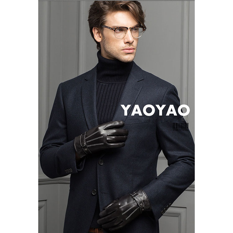 ✨Bao tay da nam YAOYAO BHY8597L Găng tay nam da cừu lót len, cúc bấm điều chỉnh ôm tay.