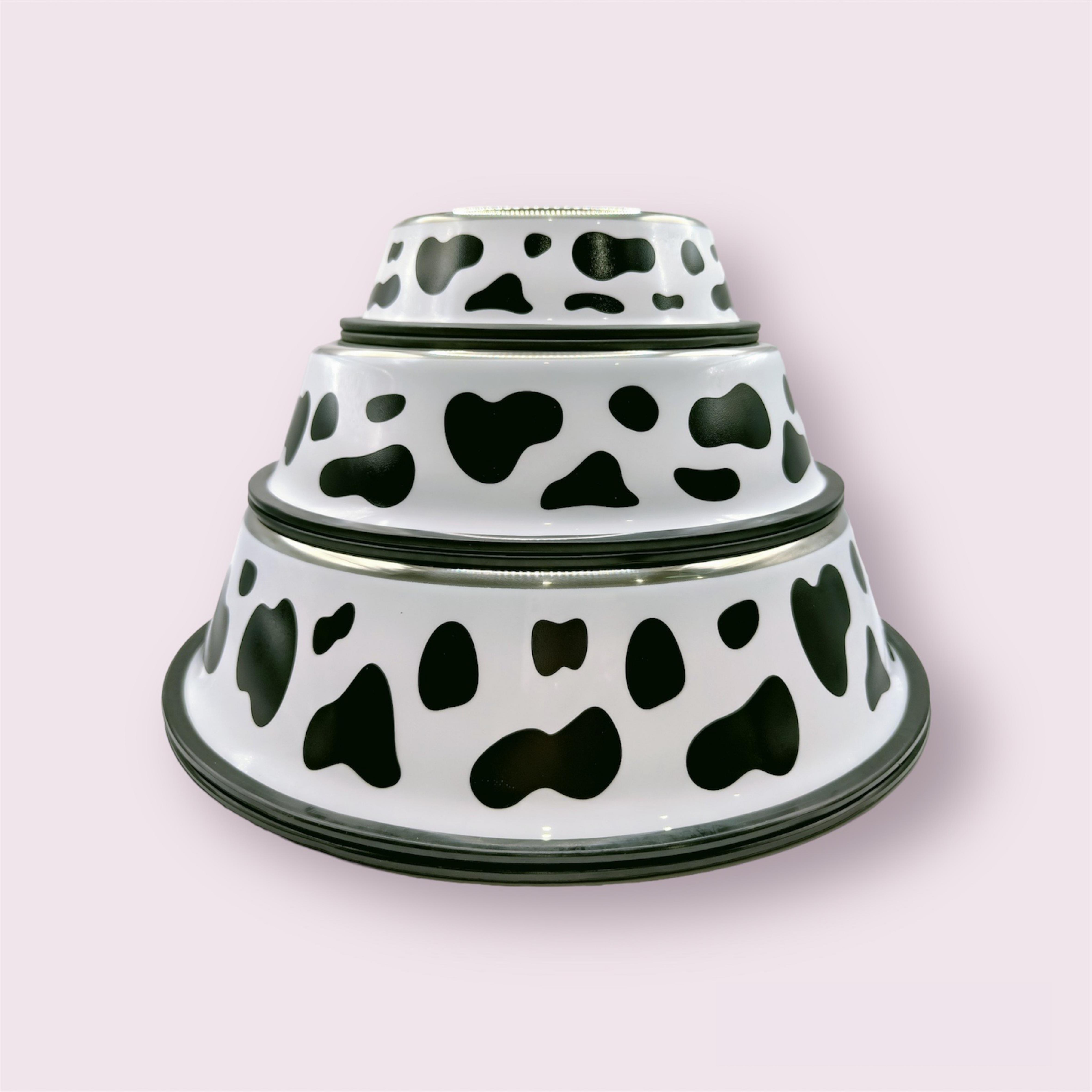 ✨Bát ăn thú cưng, bát ăn chó mèo hình bò sữa, chất liệu inox an toàn sử dụng cho vật nuôi. Bát có 3 kích thước 18cm, 26cm, 34cm. Bát ăn size lớn 34cm