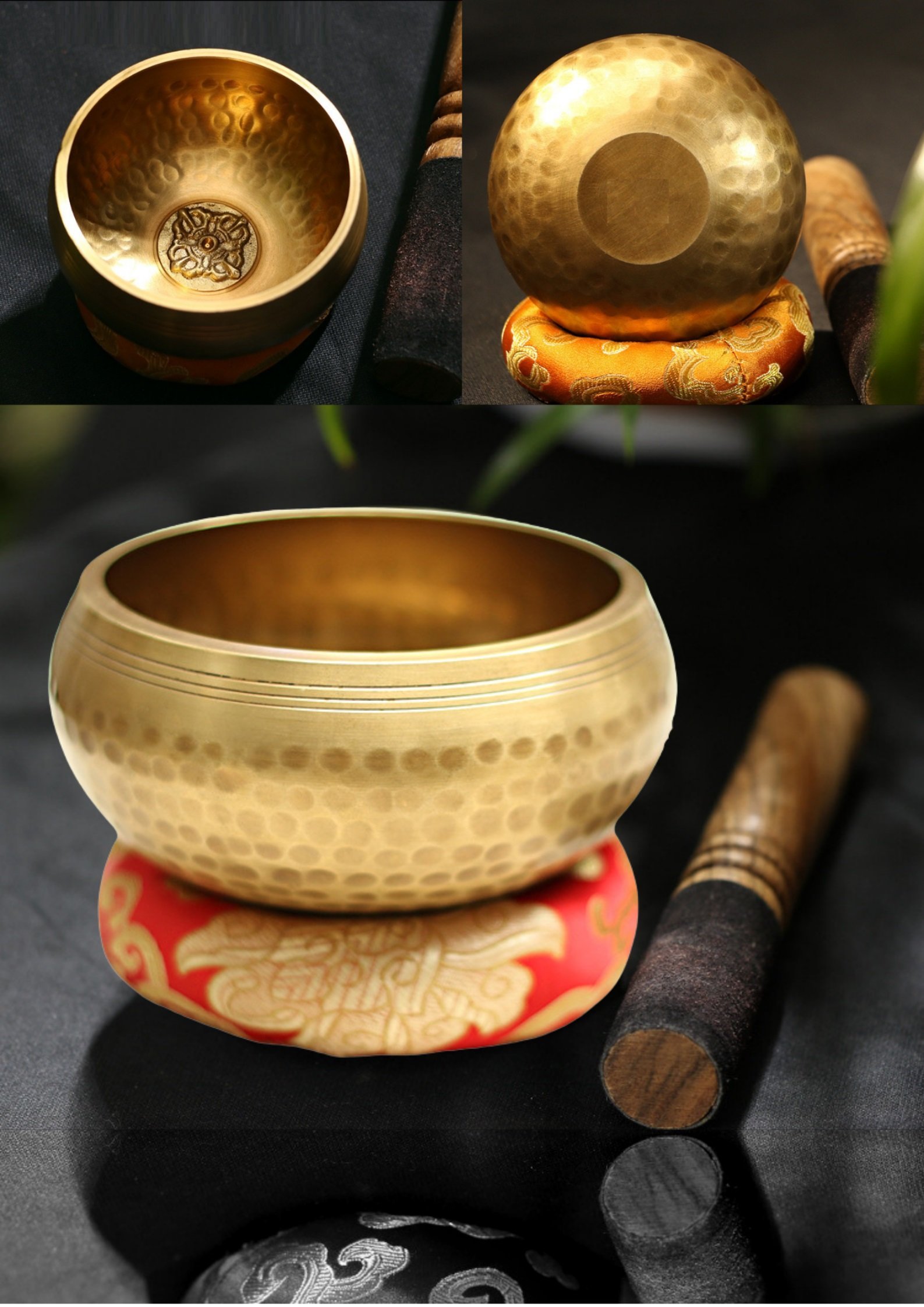 Bộ bát hát Yoga Trải nghiệm âm sắc nhiều lớp phong phú giúp thư giãn sâu sắc với bát hát thiền đích thực. Những chiếc bát thiền Nepal được làm thủ công một cách say