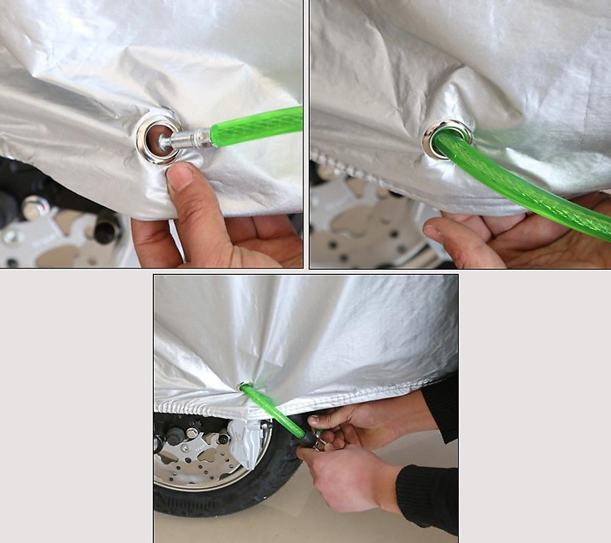 • Sản phẩm có khoan lỗ khóa và cán inox, giúp khách hàng có thể mua thêm khóa chữ U hoặc khóa càng, để xỏ lại vừa tiện lợi bảo vệ xe vừa tiện lợi chống mất trộm bạt ô tô.