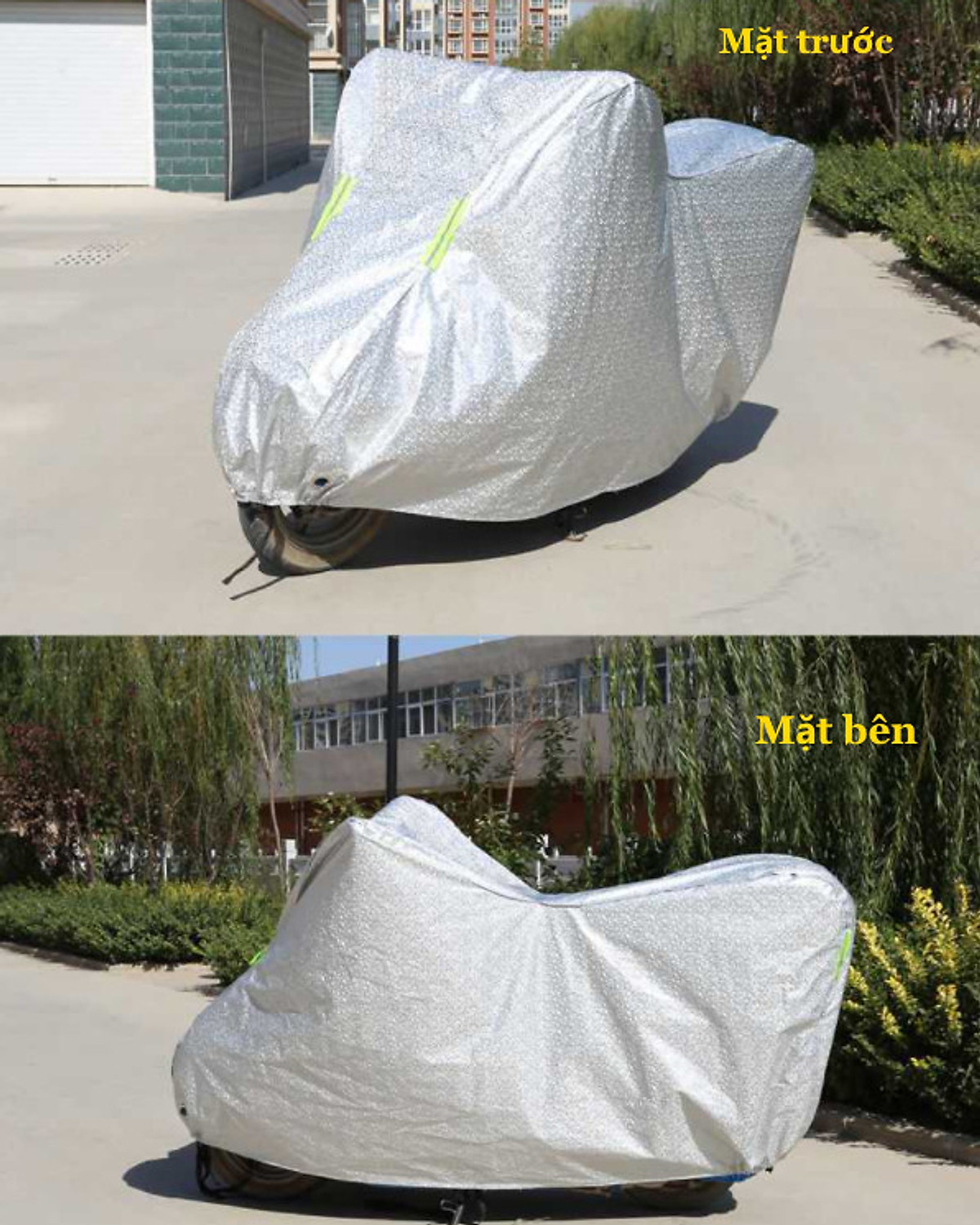 BẠT PHỦ XE MÁY PHẢN QUANG TRÁNG NHÔM CÁCH NHIỆT CAO CẤP, BẠT PHỦ XE MÁY BỐN MÙA - HÀNG CHÍNH HÃNG Bạt phủ bạc trùm che chắn nắng xe máy vải cao cấp phản