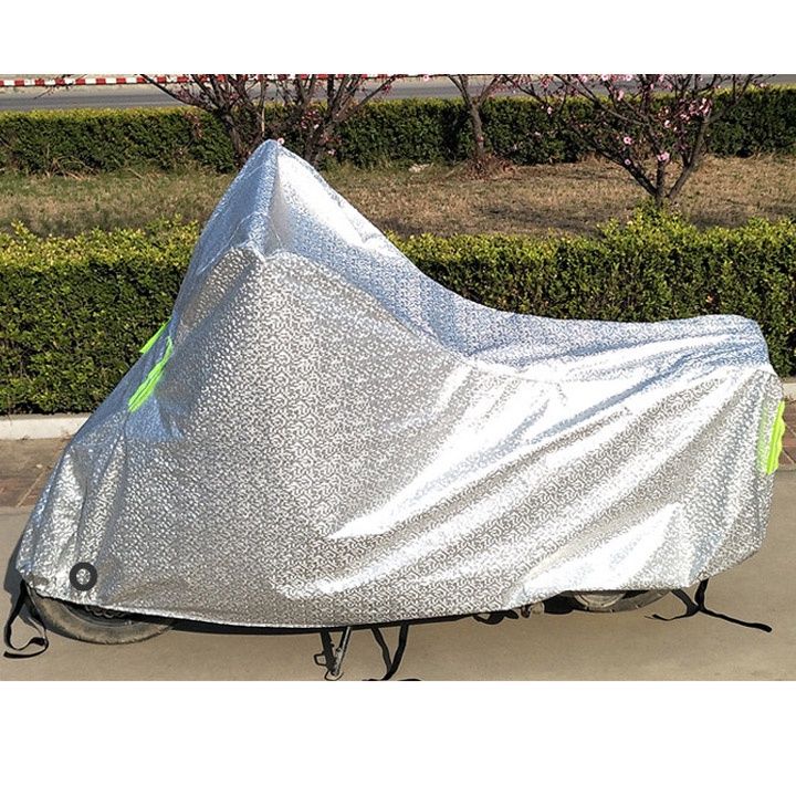 Bạt trùm xe máy tráng nhôm Loại siêu dày chất lượng cao Chống mưa chống nắng xe máy Có túi đựng bạt trùm chính hãng Size L cho xe dưới 2.05m Size XL cho xe dưới 2.27m Chính Hãng D Danido Xe máy là phương tiện phổ biến và thông dụng của người Việt Nam trên mọi nẻo đường; tuy nhiên đậu xe ngoài trời đặc biệt trong thời tiết nắng nóng sẽ gây hại cho xe máy rất nhiều, có thể làm hỏng lớp sơn, nóng yên xe, hoặc gây nổ lốp, Thấu hiều điều này, nay D Danido chúng tôi cung cấp và phân phối ra thị trường Bạt Trùm Xe Máy Tráng Bạc Che Mưa Nắng Thời Tiết Khắc Nghiệt Loại Lớn Cho Dòng Xe Tay Ga - Xe Số Thông Dụng để đáp ứng phù hợp với đại đa số các dòng xe trên thị trường hiện giờ. Ưu điểm và tính năng vượt trội của Bạt Trùm Xe Máy Tráng Bạc Che Mưa Nắng: