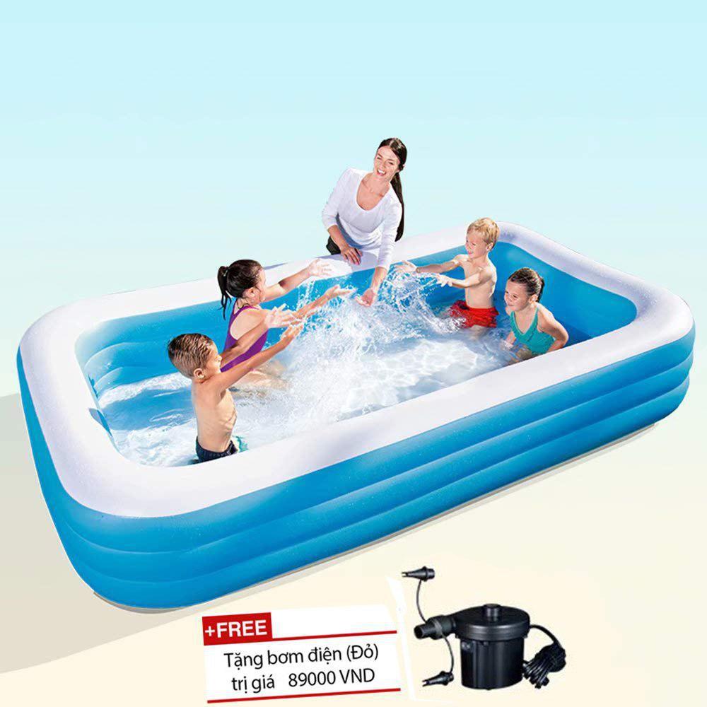 Hồ bơi thiết kế lớn có thể cho 3 bé cùng bơi Chất liệu pvc an toàn Đáy hồ bơm hơi ngồi êm ái Hồ cao 3 tầng