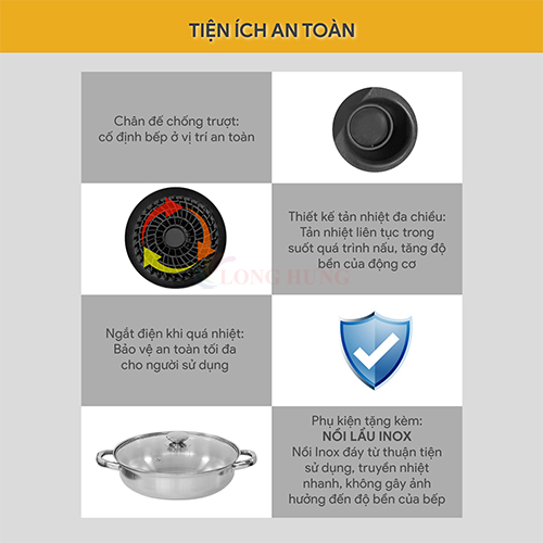 • Chế độ an toàn: Bảo vệ quá nhiệt.