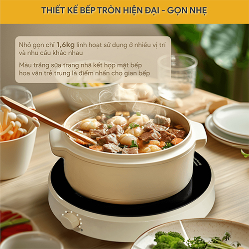 • Thiết kế bếp từ tròn mang lại sự tiện lợi và trang nhã, đồng thời tiết kiệm diện tích trong không gian nhà bếp.