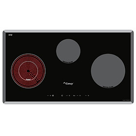 Bếp kính âm 2 từ 1 điện Kích thước: 780×450mm Kích thước âm tủ: 750×420mm Tổng công suất: 5000W Booster:3000W Các tính năng an toàn của bếp: Mặt kính SCHOTT Ceran Bảng điều khiển cảm