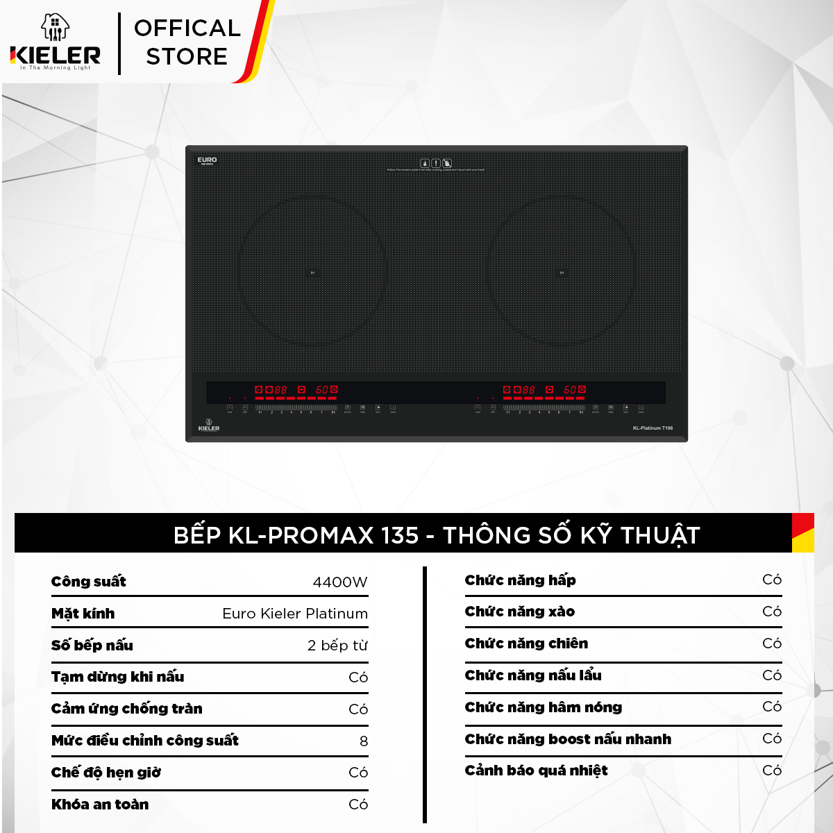 Tên sản phẩm: Bếp đôi điện từ Kieler KL-PLATINUM T106 mặt kính Euro Kieler Platinum, Bếp điện từ có hẹn giờ và cảm ứng chống tràn 4400W