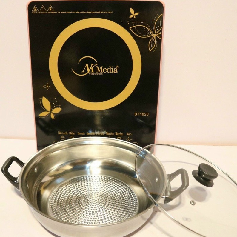 Bếp Điện Từ Đơn Cảm Ứng Kèm Nồi Lẩu Inox NK Media MD-BT1820 - Hàng Chính Hãng có mâm nhiệt làm từ đồng nguyên chất cùng với công suất cao 2000W quá trình gia nhiệt diễn ra nhanh hơn, làm nóng trực tiếp đáy nồi, nhiệt năng tập trung vùng cần nấu chín giúp chín nhanh, tiết kiệm điện.