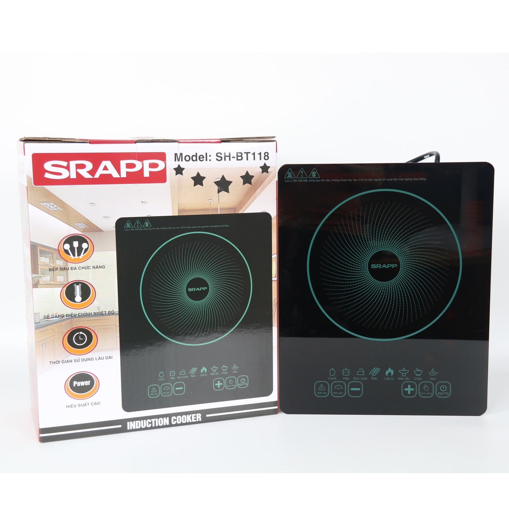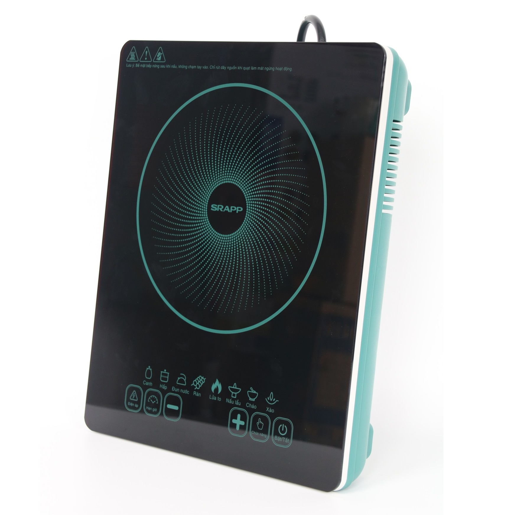 Bếp từ đơn SRAPP bản nâng cấp vùng nấu lớn hơn kèm 2 quạt tản nhiệt, giúp bền hơn, hiệu suất cao hơn.