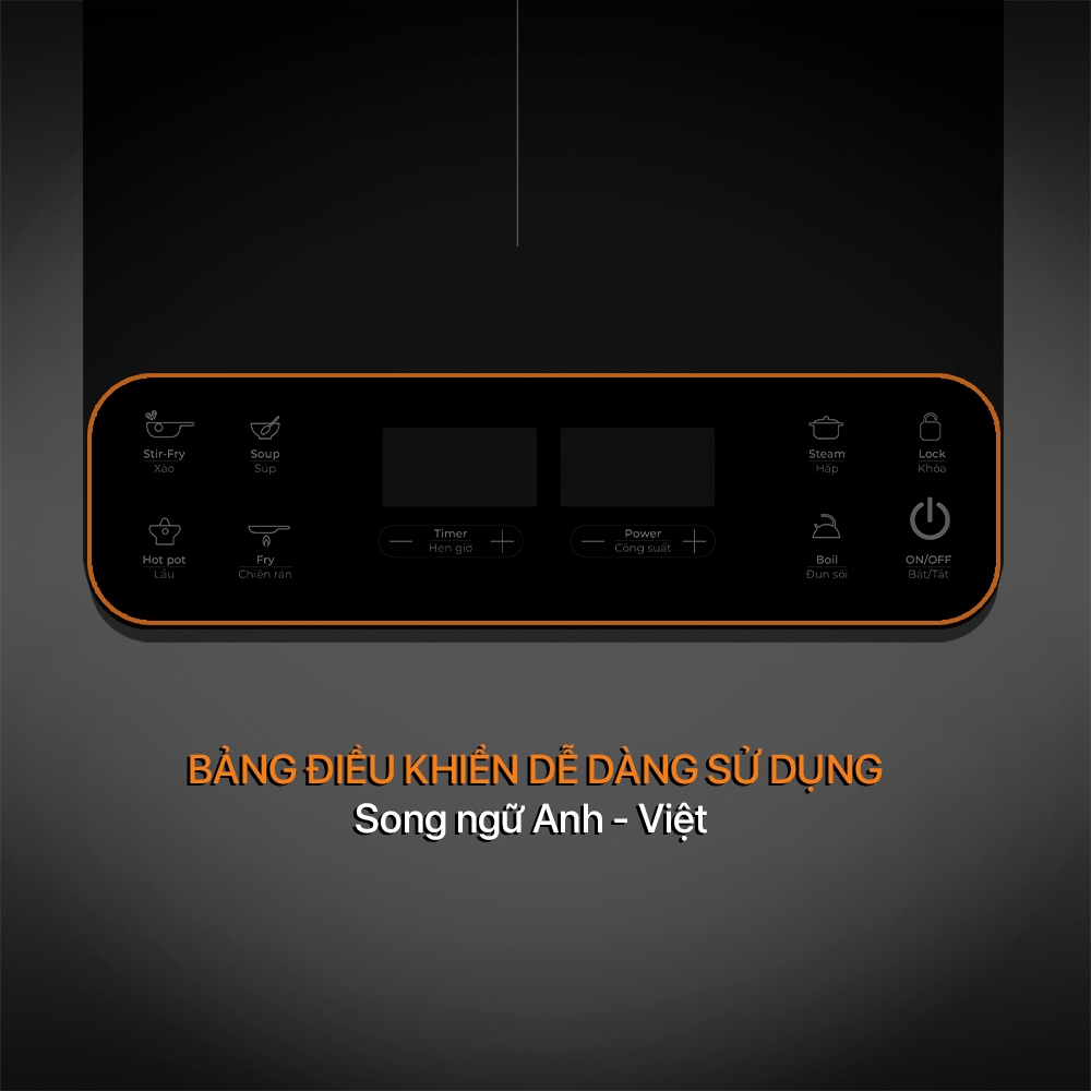 - Chi tiết: - Điều khiển điện tử - Chức năng chiên, xào, nấu, nướng - Sử dụng được cho tất cả các loại nồi - Bản điều khiển điện tử có 5 chức năng