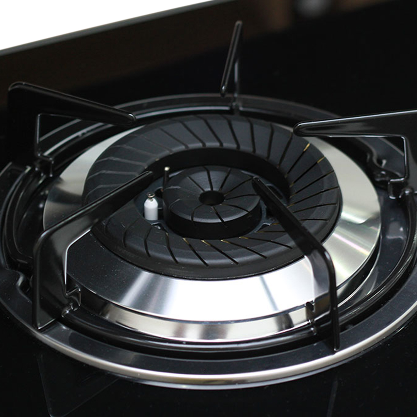 Bếp 02 lò: 01 lò to, 01 lò nhỏ Mâm chia lửa bằng đồng Hệ thống đánh lửa pin Pép hầm tiết kiệm gas Mặt kính cường lực, màu đen Kiềng gang đúc Lượng gas