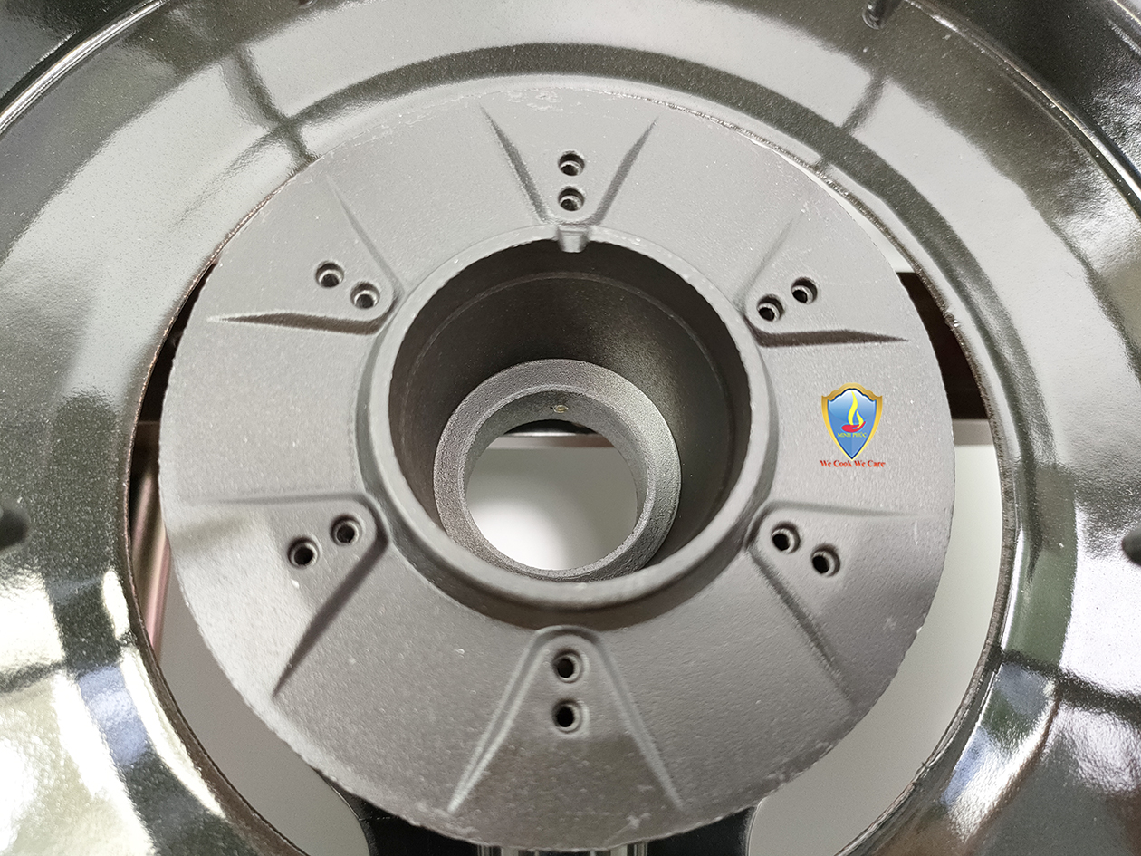 Đầu đốt bếp bằng hợp kim nhôm giúp cho bếp luôn có ngọn lửa xanh, đẹp. Từ đó, bếp luôn đảm bảo đốt cháy toàn bộ lượng gas phát sinh trong khi đun nấu, không lo những khí thải độc hại do lượng gas dư thừa không được đốt hết.