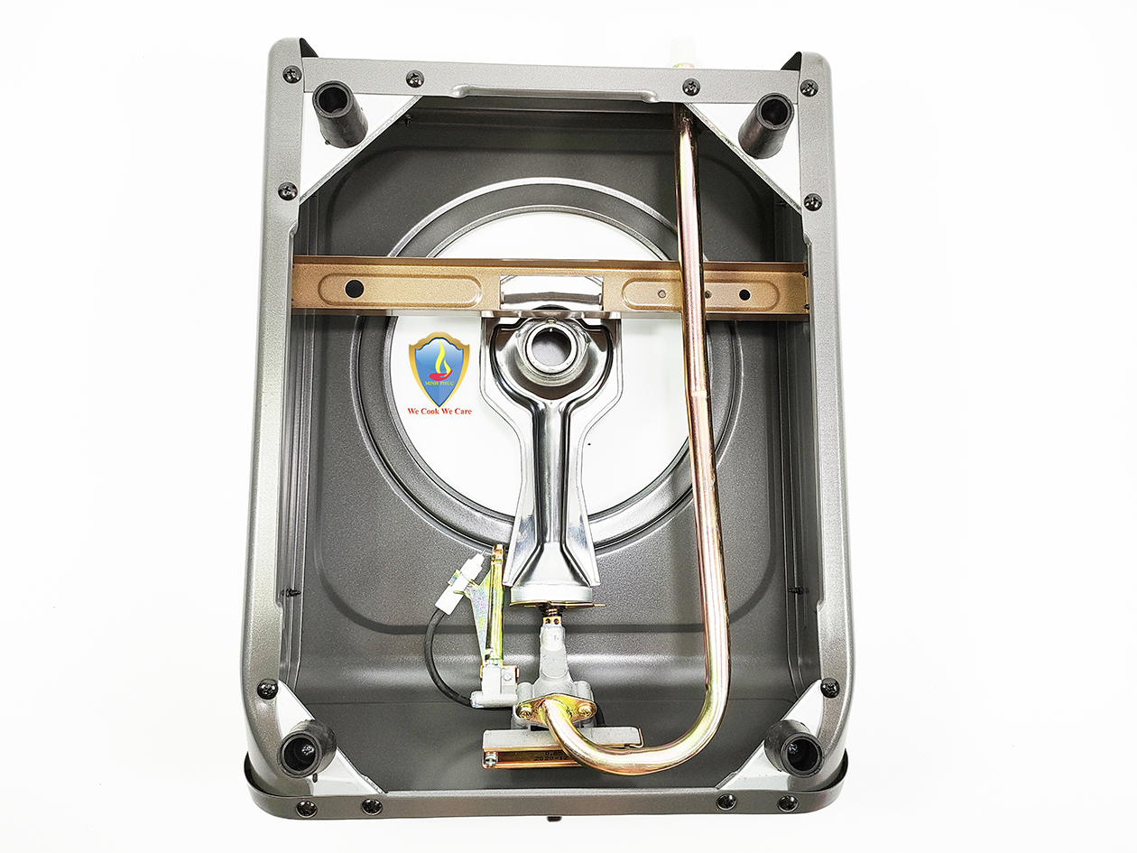Bếp có hệ thống đầu đốt hỗn hợp nhôm và atimol, được chốt chặt với điếu, giúp tăng độ bền cho bếp. Hơn nữa, với thiết kế đó, bếp luôn tạo ngọn lửa xanh, đẹp.