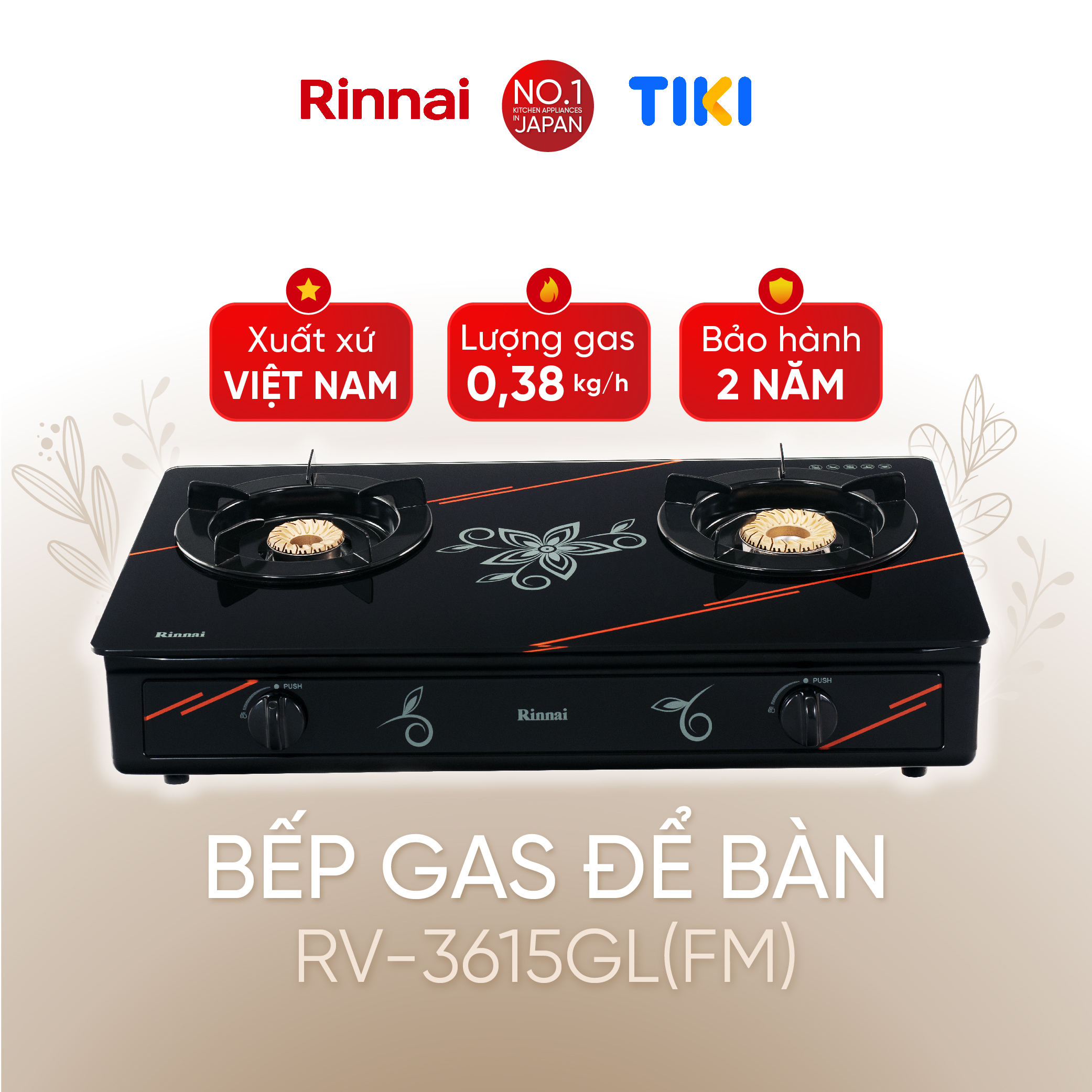 RINNAI chân thành cảm ơn bạn đã quan tâm đến sản phẩm: Bếp gas dương Rinnai RV-3615GL(FM) mặt bếp kính và kiềng bếp men - Hàng chính hãng.