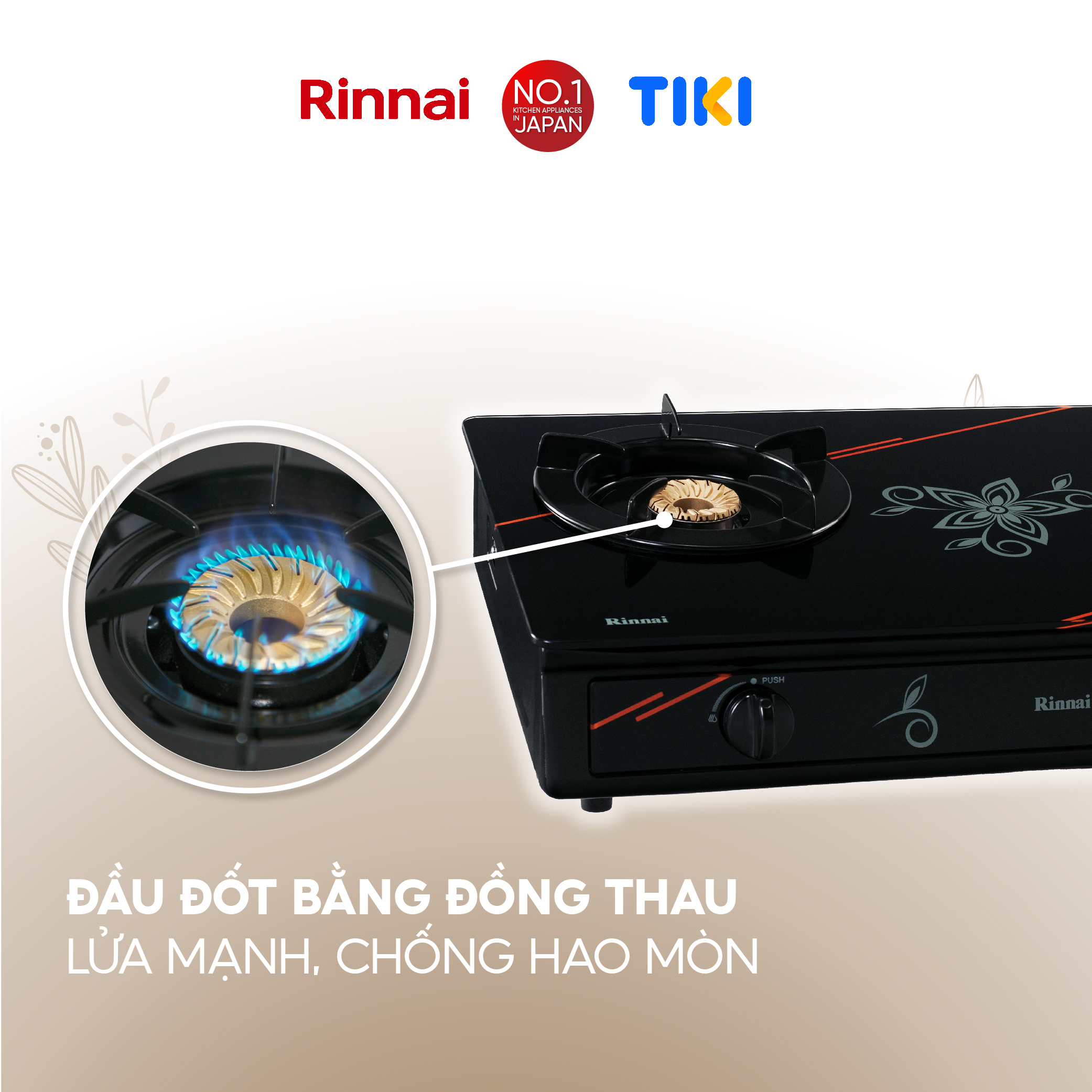 * Mặt kiếng cao cấp chịu lực, chịu nhiệt, thiết kế hoa văn sang trọng; - Thân bếp làm bằng inox chống rỉ sét, cao 60mm; - Núm vặn kiểu Rinnai; - Kiềng thép sơn