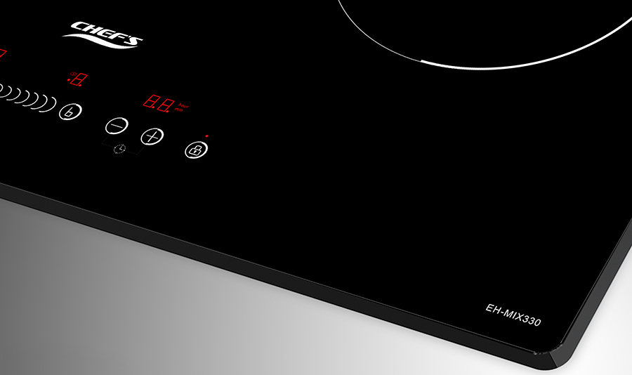 - Bếp Hỗn Hợp 02 Vùng Nấu Chef's EH-MIX330 sử dụng đa năng với bếp hỗn hợp EH-MIX330 - Mặt kính ceramic chịu nhiệt Schott Ceran vát cạnh – Germany - Mâm nhiệt EGO Hi-light,