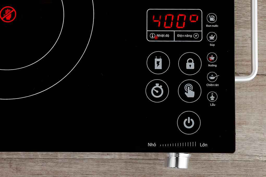 Đặc biệt, tính năng tăng giảm nhiệt độ trên bếp rất đặc biệt. Bạn không cần phải nhấn chọn từng mức nhiệt độ mà chỉ cần dùng thao tác vặn nhẹ sang trái hoặc sang phải ở núm điều chỉnh để có thể tăng giảm nhiệt đến mức thích hợp. Lưu ý bạn chỉ có thể điều chỉnh nhiệt độ/công suất nấu cho chế độ nấu lẩu, nướng, chiên còn chế độ nấu súp, đun nước thì bạn không thể chỉnh được.