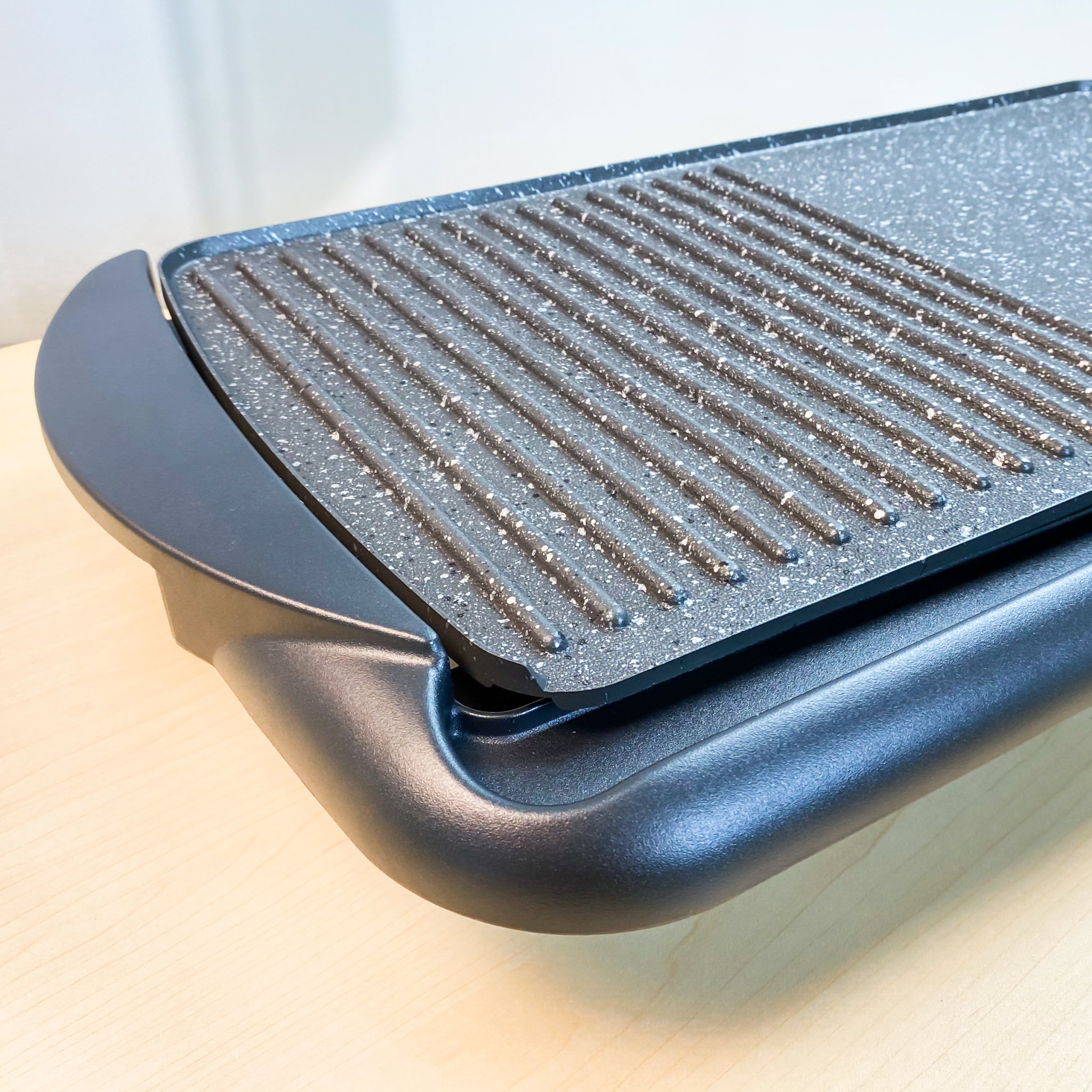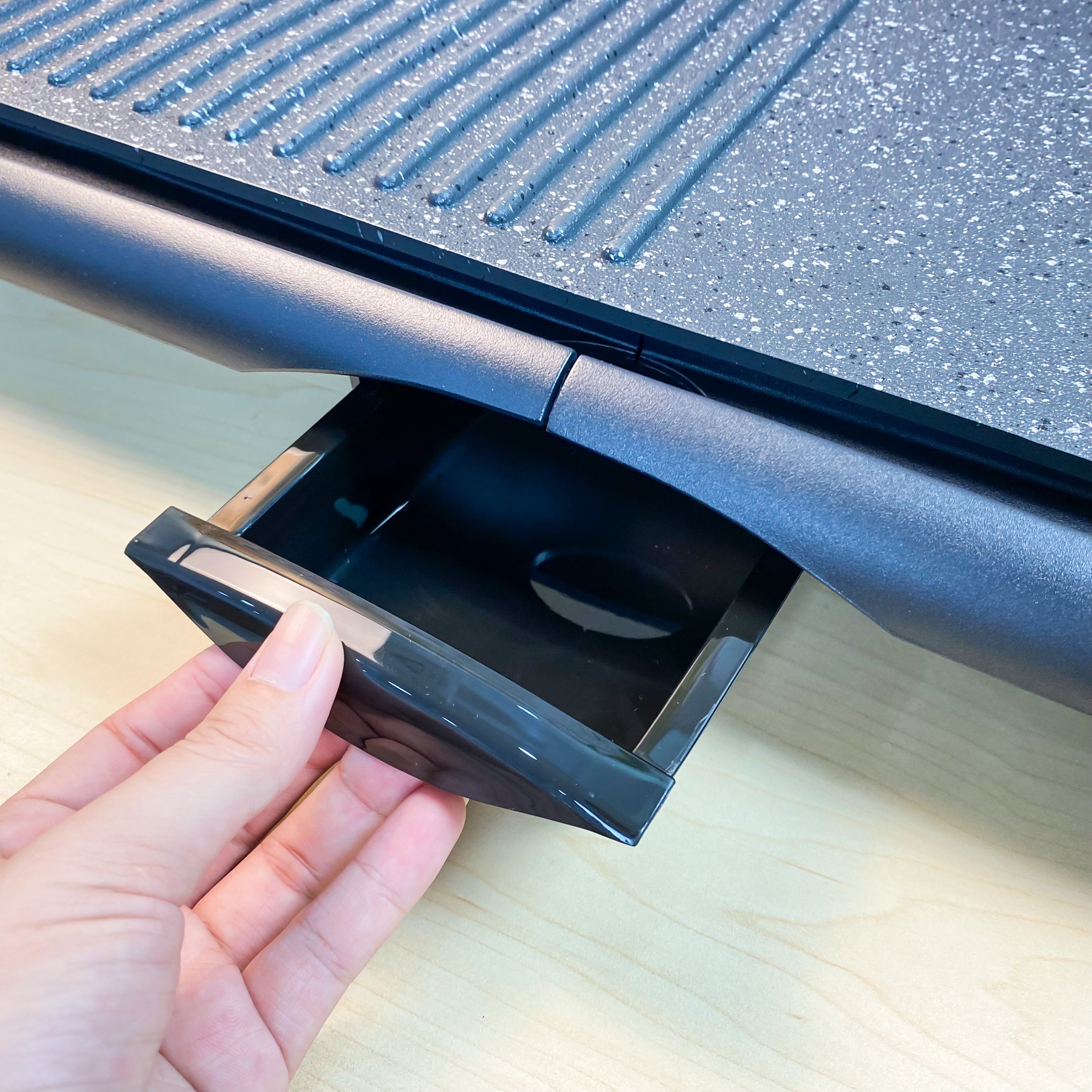 Bề mặt vỉ nướng có lỗ thoát dầu và bên dưới vỉ có ngăn hứng dầu, giúp dễ dàng loại bỏ dầu mỡ thừa khi đang nướng. Đồng thời, vỉ nướng được đính kèm theo giá đỡ, giúp nâng một bên vỉ nướng (bên cắm bộ điều nhiệt) cao hơn bên còn lại (bên có lỗ thoát dầu) để dầu mỡ có thể dễ dàng chảy về phía lỗ thoát dầu, vừa mang lại món ăn ngon, vừa đảm bảo an toàn sức khỏe cho bạn và những người thân trong gia đình.