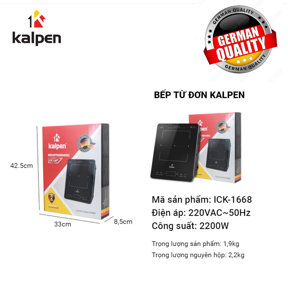 Bếp từ đơn cao cấp Kalpen ICK-1668 công suất 2200W hàng Đức - Bảo hành 2 năm
