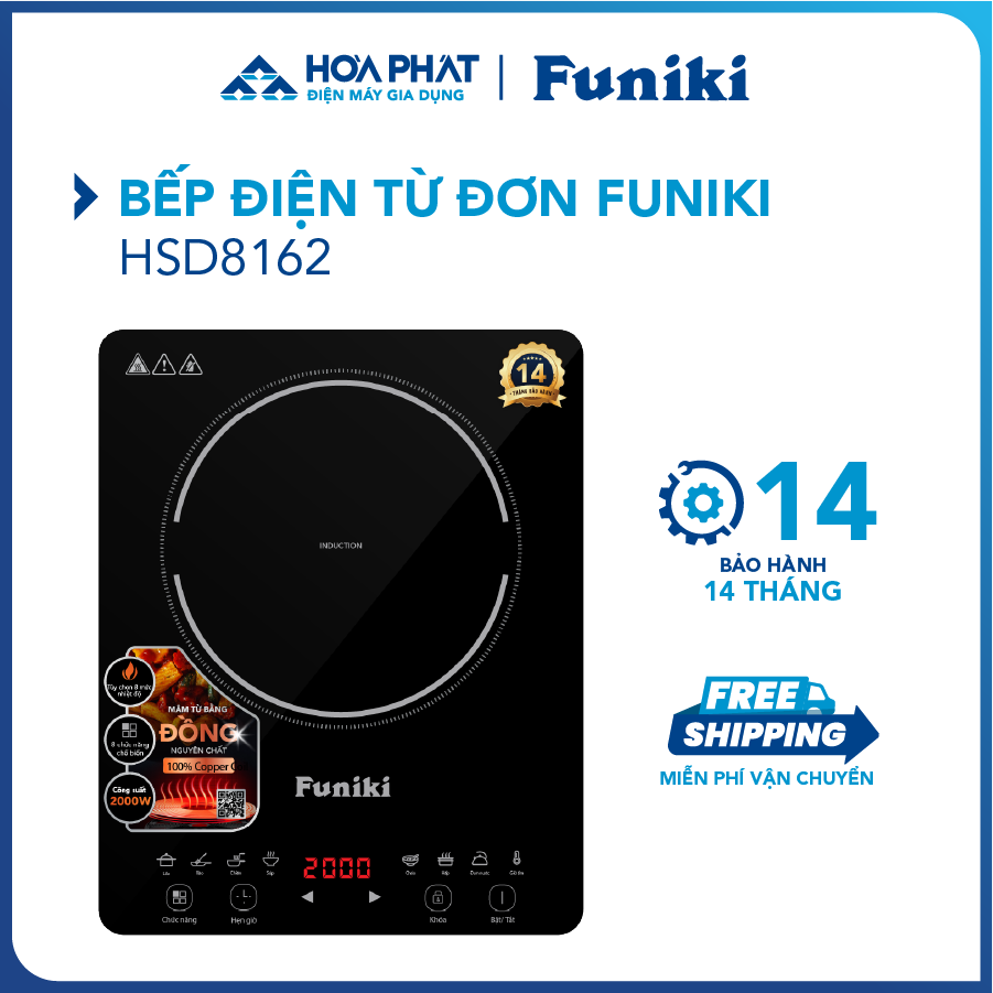 ✨Bếp từ đơn Funiki HSD8162 - Công suất 2000W - Bảo hành 14 tháng - Hàng chính hãng