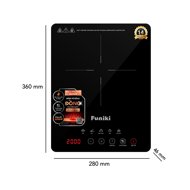 Bếp từ đơn Funiki HSD8255 - Công suất 2000W - Bảo hành 14 tháng - Hàng chính hãngBếp từ đơn Funiki HSD8255 - Công suất 2000W - Bảo hành 14 tháng - Hàng chính hãngBếp từ đơn Funiki HSD8255 - Công suất 2000W - Bảo hành 14 tháng - Hàng chính hãng