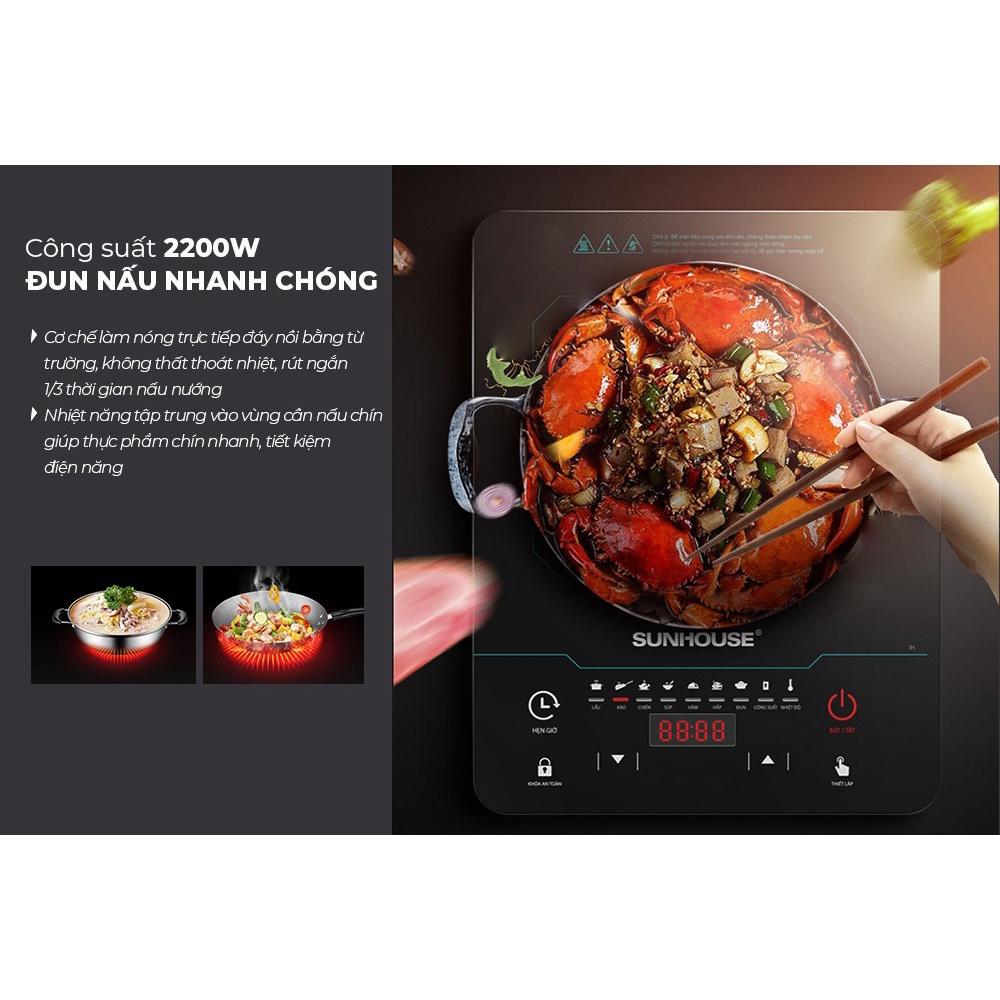 Bếp từ đơn SUNHOUSE SHD6873 có công suất cao 2200W giúp quá trình gia nhiệt diễn ra nhanh hơn. Cơ chế làm nóng trực tiếp đáy nồi bằng từ trường và nhiệt năng chỉ tập trung vào vùng cần nấu chín giúp thực phẩm chín nhanh, rút ngắn thời gian nấu nướng.