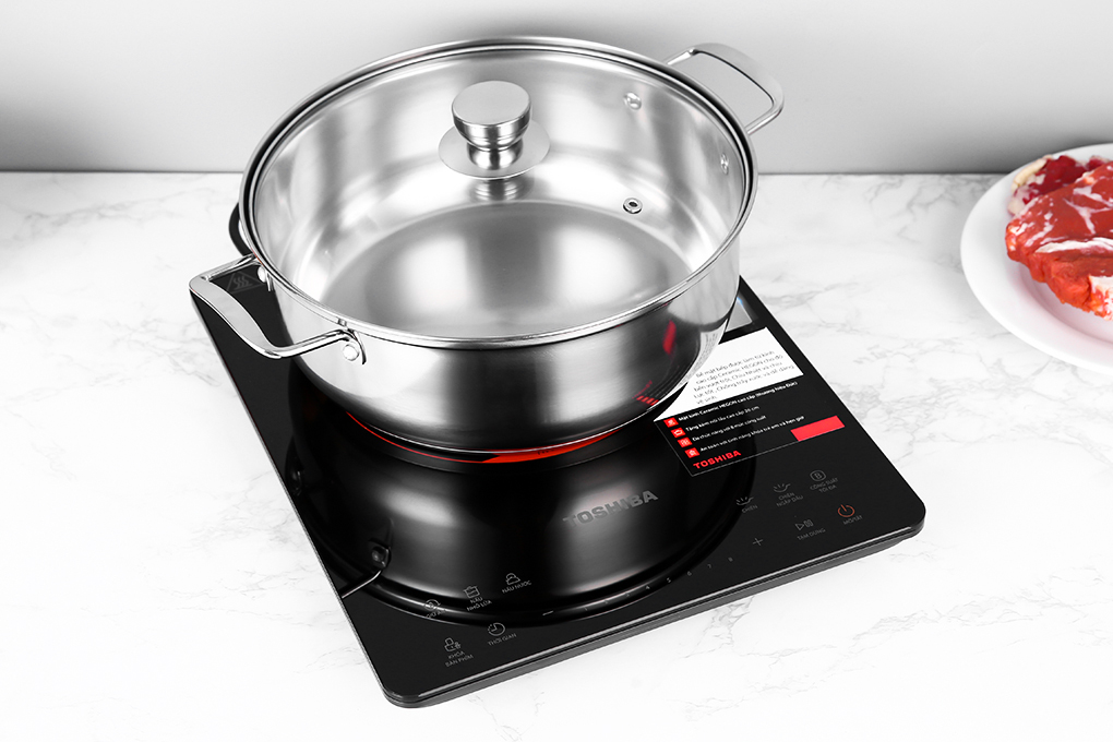 Bếp từ Toshiba công suất lớn 2000W, trang bị mâm nhiệt kép giúp truyền nhiệt đến nồi nhanh, rút ngắn thời gian nấu tối đa
