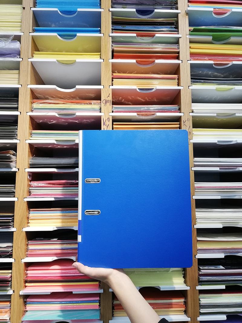 Bìa còng KKY F4 Xanh dương 305B (9cm) Bìa được làm từ carton cứng, có độ bền cao, chịu va đập tốt. Vải PVC bọc ngoài mềm mại, không thấm nước, dễ dàng làm sạch lau chùi. Sản phẩm có kích cỡ bằng khổ giấy FC-S, phù hợp với đa số các loại giấy tờ hiện nay, là sản phẩm lý tưởng để lưu trữ hồ sơ, giấy tờ quan trọng không bị nhăn, nhàu. Gáy hộp rộng 9cm, có thể đựng được tối đa 650 tờ. Bìa còng có khóa càng là kim loại phủ niken sáng bóng, chống gỉ sét, chống bám bụi, có thể đóng mở nhiều lần để thêm bớt tài liệu mà không bị cong vênh. Sản phẩm được sản xuất trên dây chuyền công nghệ hiện đại, không chứa các hóa chất độc hại, an toàn cho sức khỏe người sử dụng. Bìa còng đựng tài liệu Kokuyo 305B khổ FC-S dày 9cm thích hợp cho môi trường văn phòng, công sở .