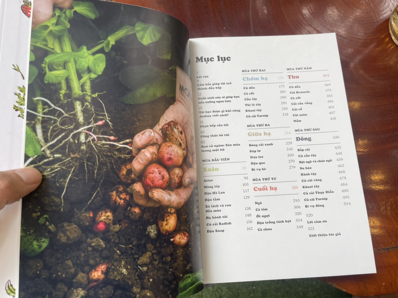 Từ căn bếp của nhà hàng nổi tiếng Blue Hill, Joshua McFadden đã tới “nghịch đất” ở Nông Trại Bốn Mùa, học cách gieo trồng, thu hoạch và chế biến thức ăn theo mùa tươi ngon thấm đẫm vị của đất trời. “Nhưng theo mùa là theo thế nào? Xuân, Hạ, Thu, Đông không đủ để thể hiện những gì thực sự diễn ra ngoài ruộng ngoài vườn, thế nên tôi phân chia cuốn sách thành 6 MÙA, thay vì bốn mùa truyền thống. Trong cuốn sách này, mùa hè được chia làm ba phần, vì mùa hè là mùa năng động, cứ cách vài tuần là cách đợt rau củ mới tới tấp đổ về, gần như một vụ mùa nhỏ.”