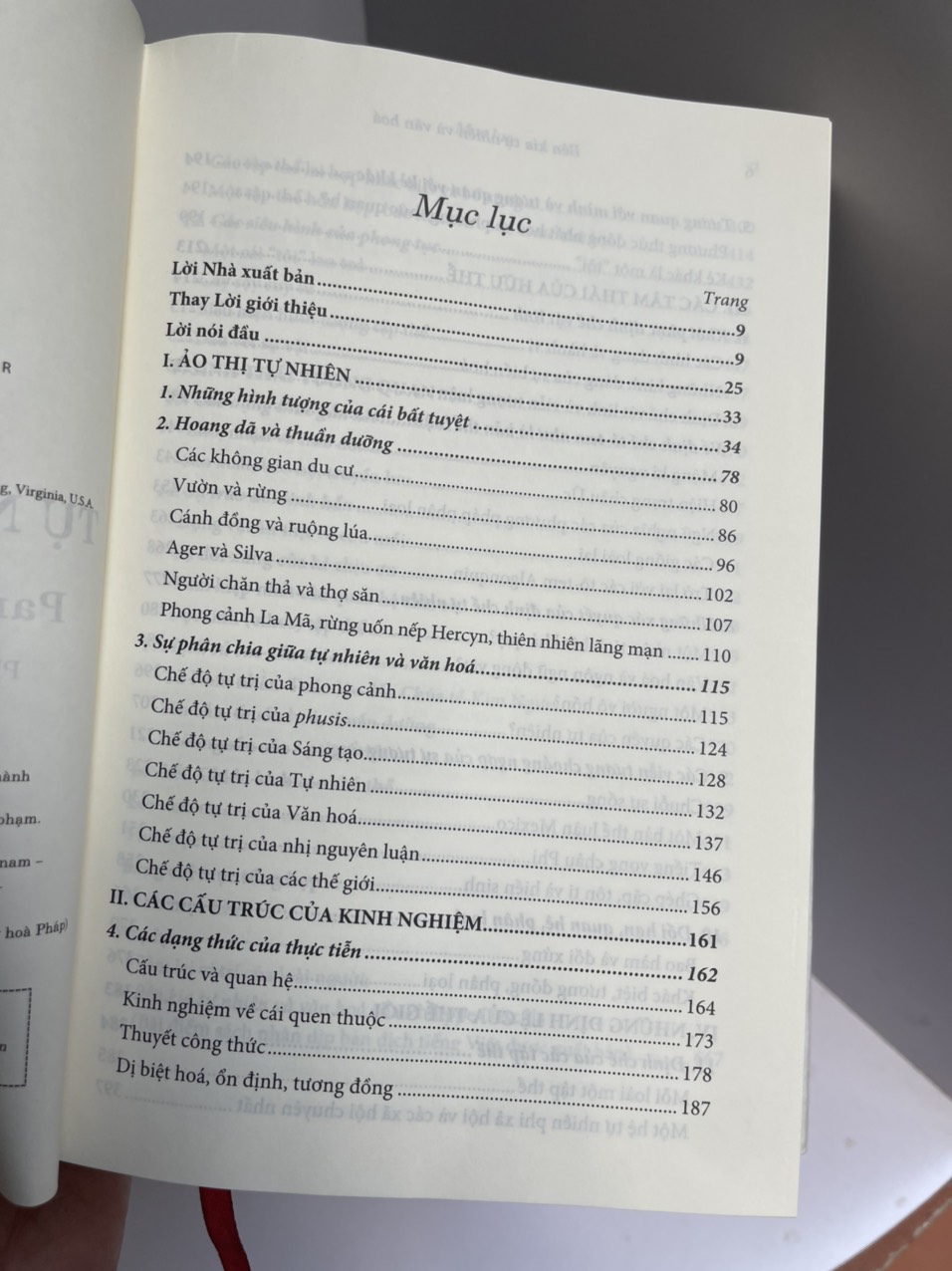 Liệu chúng ta có thể hình dung về một thế giới không có sự phân biệt văn hóa với tự nhiên? Philippe Descola đề nghị một lối tiếp cận mới về những cách thức phân bố các đặc tính liên kết và phân cắt giữa con người và môi trường tự nhiên của con người. Nghiên cứu của ông làm nổi bật bốn phương thức nhận dạng các “sinh thể” và kết tập chúng dựa trên những nét chung tương ứng giữa các lục địa: định chế tô-tem nhấn mạnh đến tính liên kết vật chất và tinh thần giữa người và các thực thể không phải người; định chế tương ứng giả định giữa các thành phần của thế giới có một hệ thống phân cắt được cấu tạo từ những mối quan hệ tương ứng; định chế vật linh quy cho các thực thể không phải người một nội tính của con người, nhưng phân biệt chúng với con người nhờ vào cơ thể; định chế tự nhiên thì ngược lại, gắn kết con người với các thực thể không phải người nhờ vào các đặc tính liên kết vật chất và phân biệt con người với chúng dựa trên khả năng văn hóa.