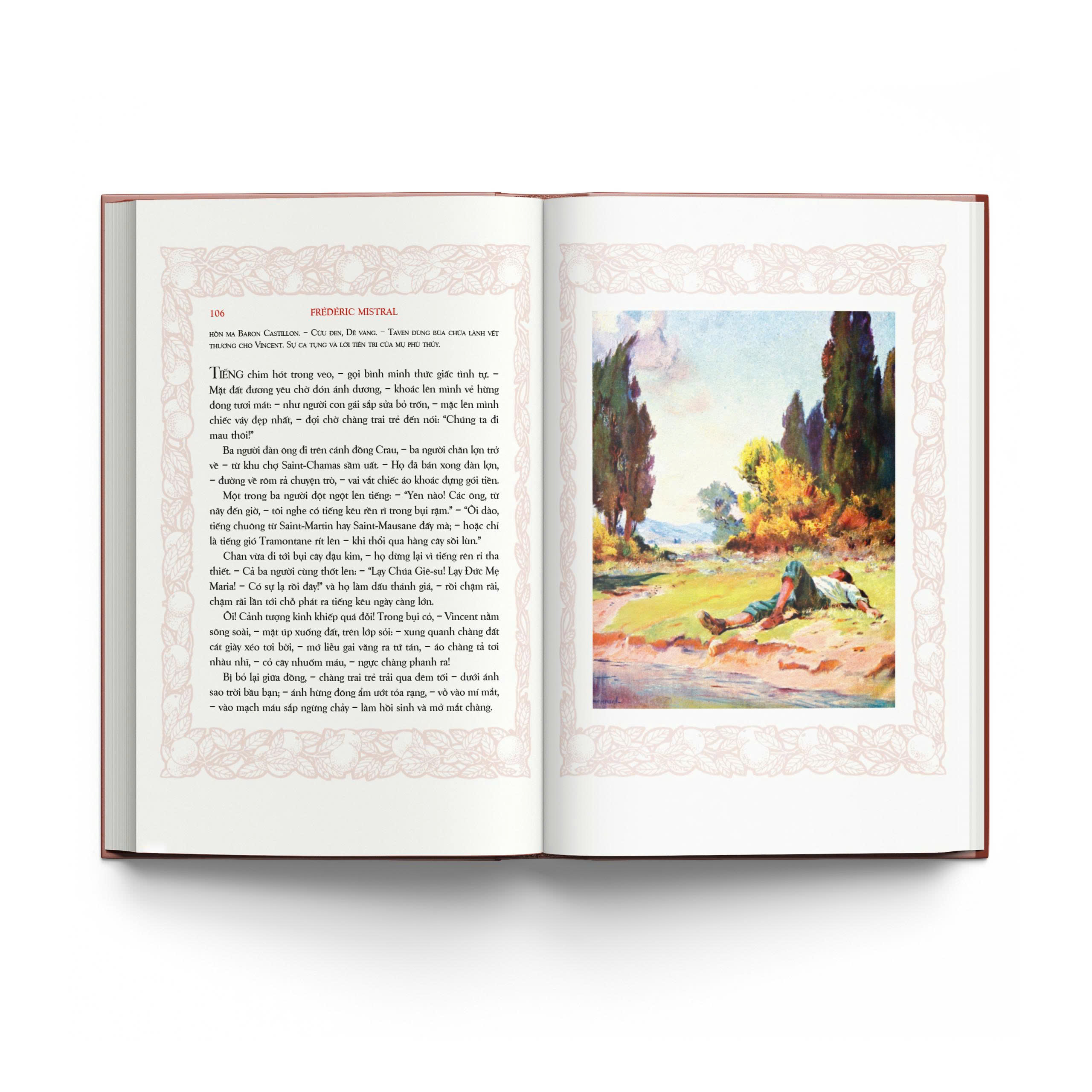 Nhà thơ Mistral đã dày công phác họa cả một bức tranh khung cảnh Provence trù phú làm phông nền cho câu chuyện diễm tình của đôi trẻ Mireille – Vincent. Những nông trang lúa mì rộng lớn vang vang tiếng liềm tiếng hái vào mùa thu hoạch. Những đêm khuya thanh vắng, sương đọng trên lá, ánh trăng soi tỏ một miền. Những mục đồng nằm nghỉ dưới gốc cây sồi bên cạnh đàn cừu cái trầm ngâm tư lự. Những loài cây cỏ thân thuộc của xứ sở Provence, nào bạch dương, nào sếu, nào đậu kim, thiên thảo. Tất cả cảnh vật đều được mô tả sống động như thực.