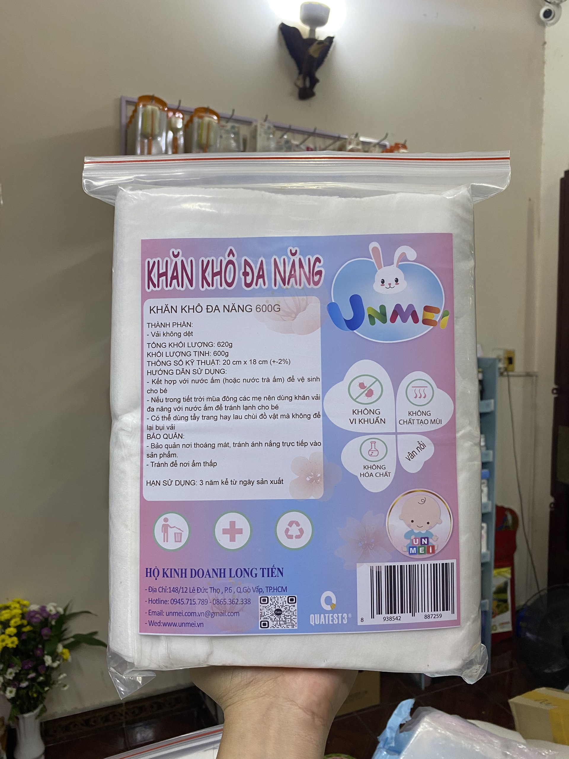 Khăn vải khô đa năng Unmei 200g- Phiên bản đổi mới Sản phẩm Khăn Khô Unmei 200g xuất hiện trong nhiều năm gần đây đã phần nào giúp đỡ các bà mẹ trong việc vệ sinh cho