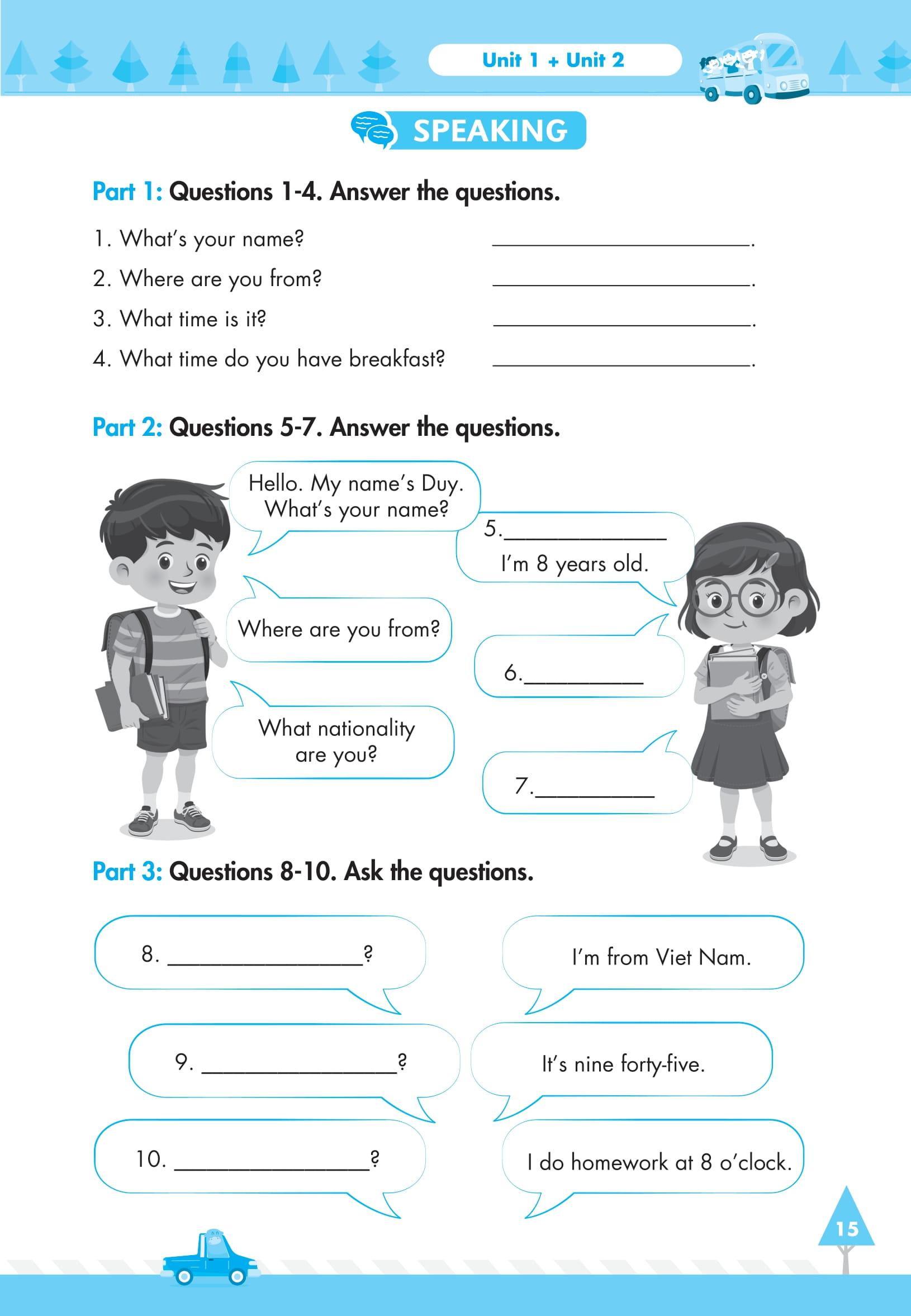Sau 10 bài học sẽ là bài kiểm tra cuối học kỳ để kiểm tra lại toàn bộ các kiến thức từ vựng và cấu trúc các em đã học sau một kỳ học.