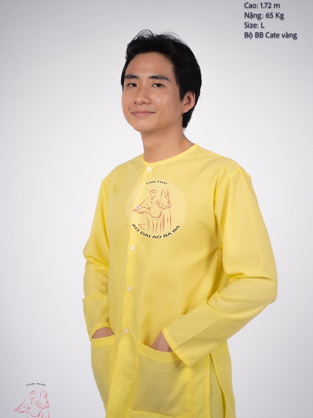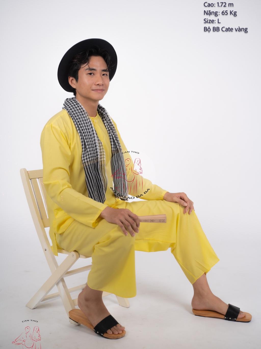 Bộ Bà Ba Nam Áo Vàng và Quần Nâu Vải Kate Mô tả chi tiết: • Chất liệu: Vải kate, thoáng mát, mềm mại và bền đẹp. • Màu sắc: Áo vàng- quần nâu đất