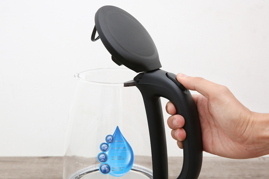 Bình đun siêu tốc Midea có vỏ bình bằng thủy tinh chịu nhiệt cao cấp, sang trọng, dung tích 1.8 lít đáp ứng nhu cầu nước nóng cho gia đình có từ 3 - 4 thành viên