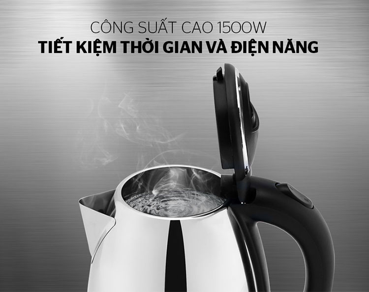 Bình Đun Siêu Tốc Sunhouse HTD1088 được trang bị công suất mạnh 1500W cho thời gian nấu nước nhanh chóng, giúp tiết kiệm thời gian và điện năng tối đa.