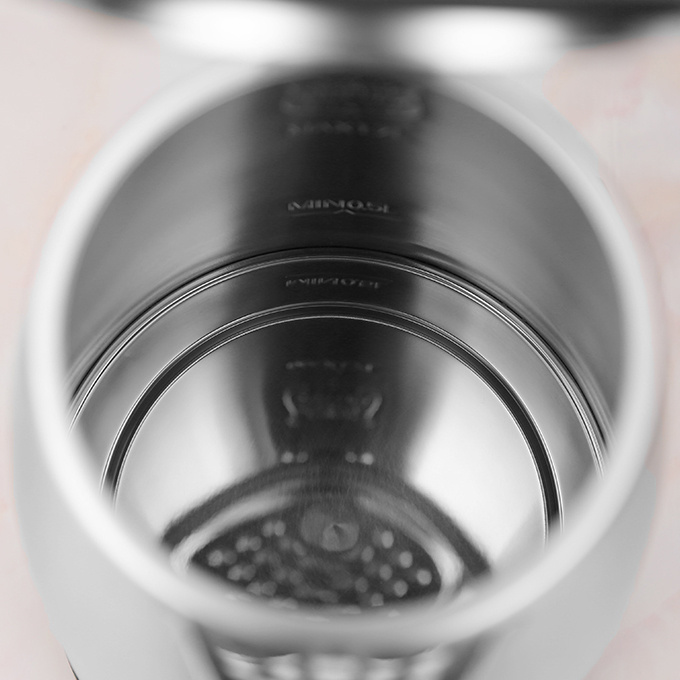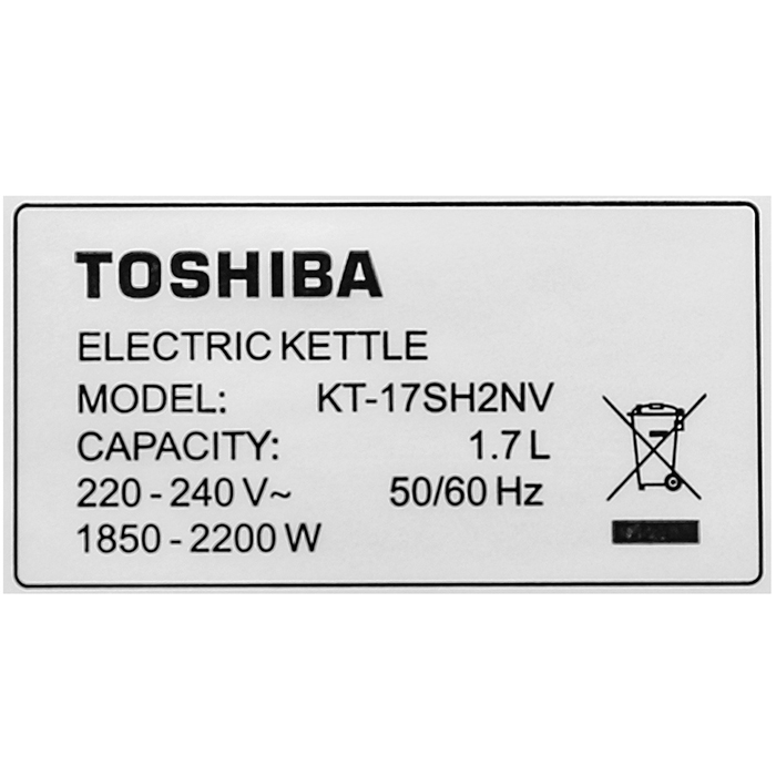 Bình đun siêu tốc Toshiba 1.7 lít KT-17SH2NV có thân và ruột ấm làm bằng Inox SUS 304 cao cấp, sáng bóng, không xỉn màu và đặc biệt là không để lại cặn dưới đáy ấm sau thời gian dài sử dụng. Dung tích 1.7L phù hợp với gia đình có từ 3 - 4 thành viên.