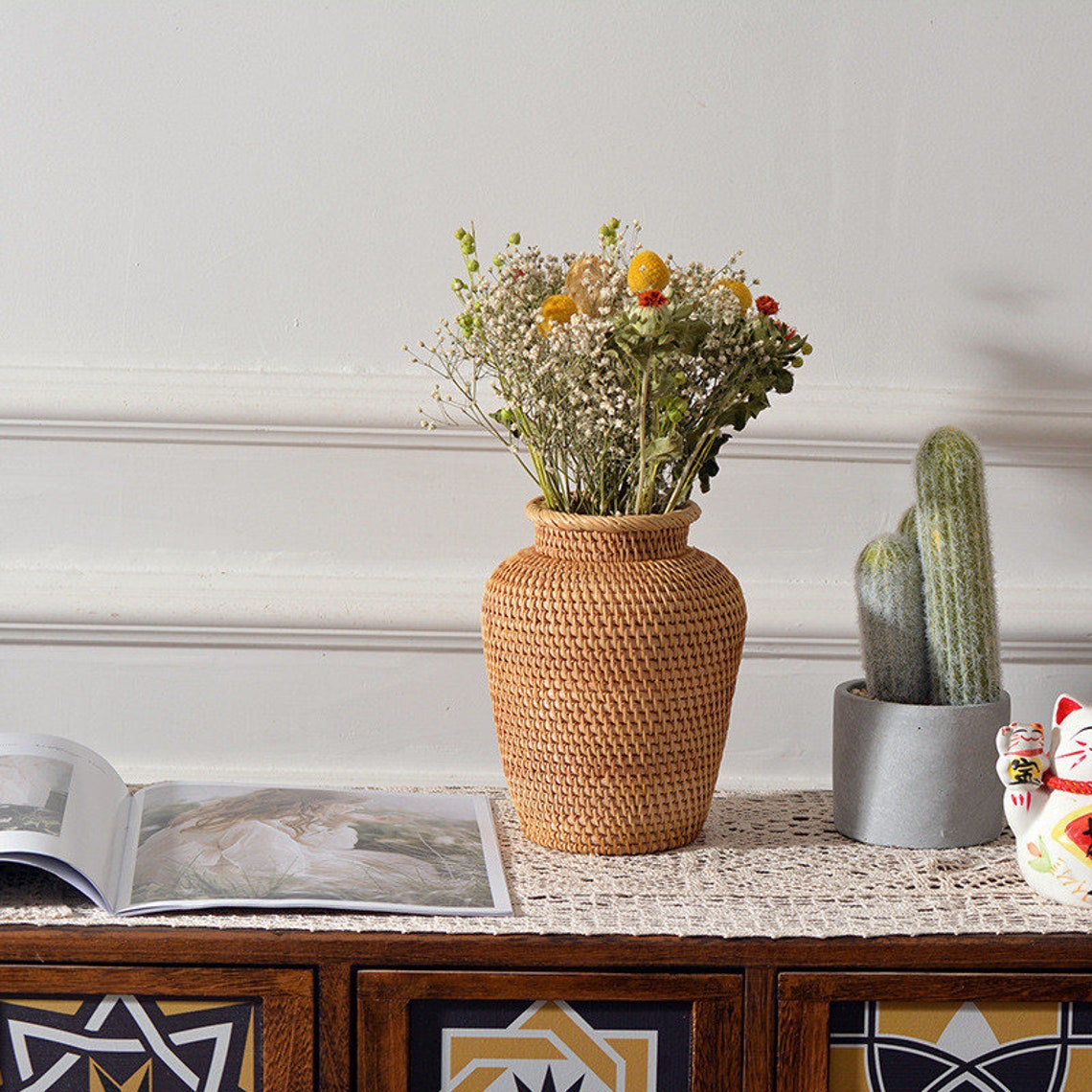 Bình hoa mây ECOHUB, bình hoa khô phòng khách,phòng ngủ, hoa trang trí (Rattan Flower Basket)