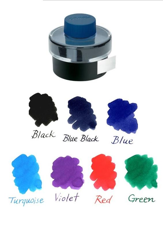 Mực Lamy T 51: - Bã mực lắng xuống phần trũng. - Bình nhựa. - Dung tích: 30 ml - Màu sắc: có ba màu là xanh (dễ tẩy), đen và đỏ.