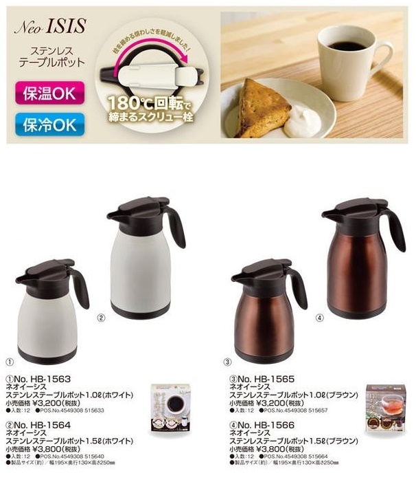 BÌNH NƯỚC GIỮ NHIỆT PEARL METAL TABLE NEO ISIS 1.0L/ 1.5L - HÀNG NỘI ĐỊA NHẬT BẢN