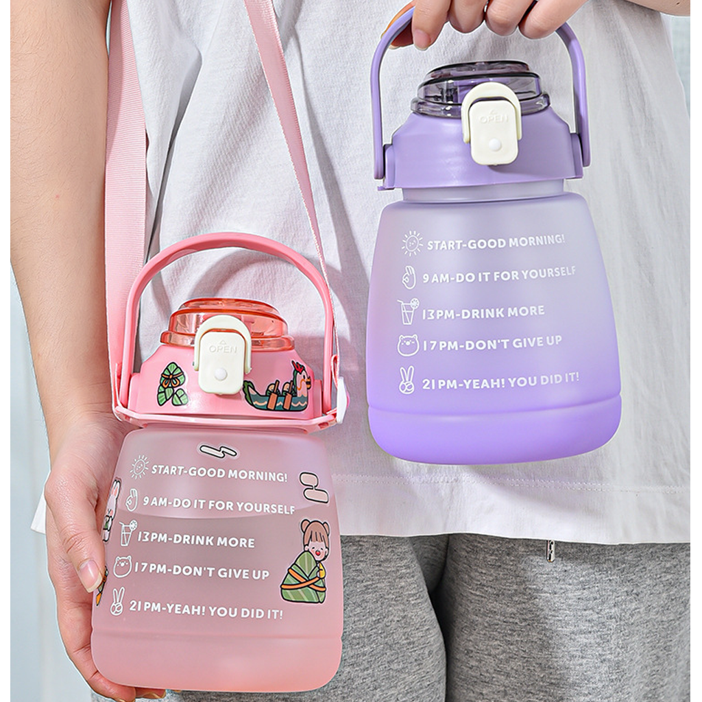 Bình Nước Nhựa Nhắc Nhở Uống Nước Dung Tích 1300ml Có Dây Đeo Và Quai Xách