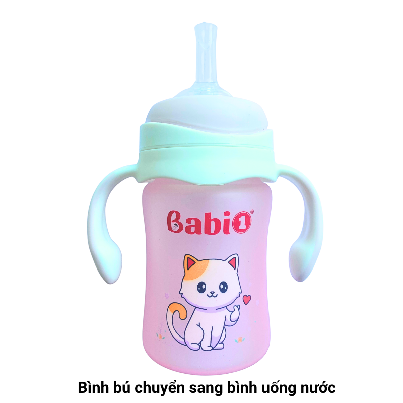 Bình sữa thuỷ tinh Babi1 cảm biến nhiệt báo nóng, Bình sữa cho bé thiết kế cổ rộng chống sặc, có tay cầm xoay 360 độ, bình sữa cho bé 1, 2, 3 tuổi dung tích 240ml.