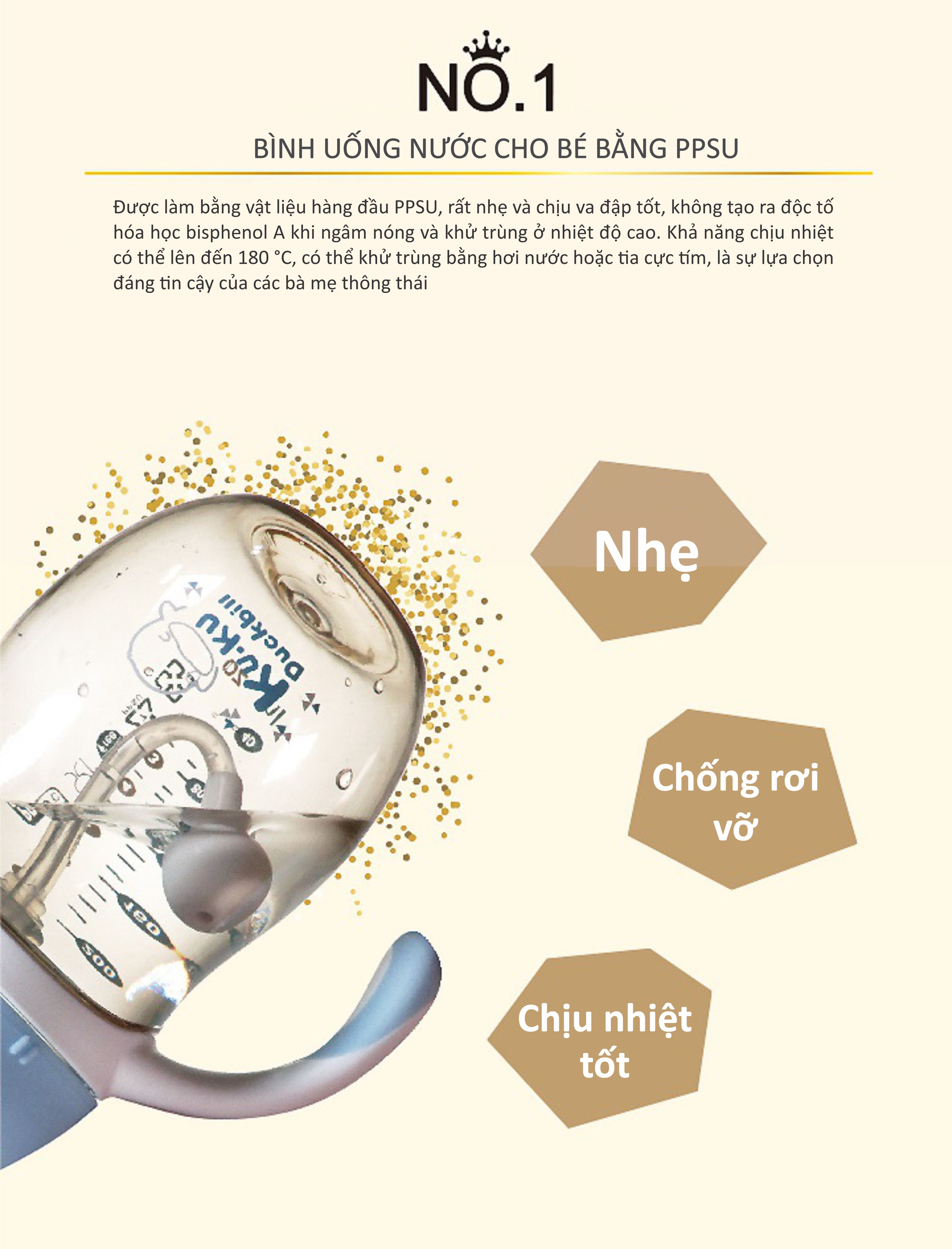 THIẾT KẾ VÀ CÔNG DỤNG: + Vật liệu PPSU: tính ổn định phân tử mạnh và khả năng chịu nhiệt cao. So với chai làm bằng nhựa PP, bình sữa PPSU được cấu tạo cứng