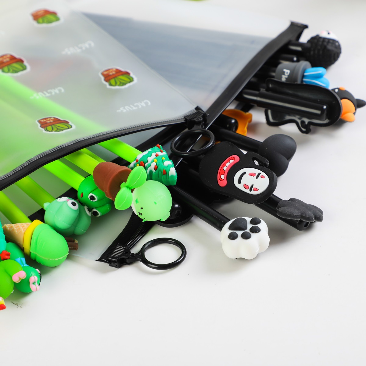 Bút bi nước mực gel màu đen hình thú dễ thương, kèm túi zip sét 20 chiếc | Trùm đồ gia dụng