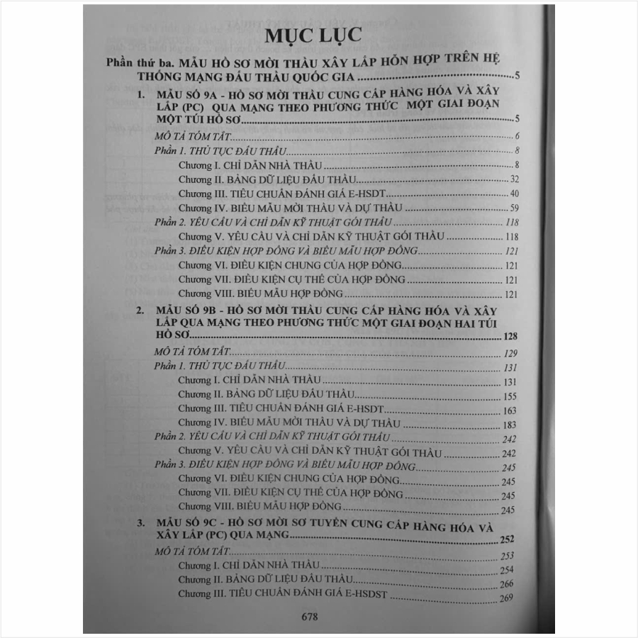 - Toàn bộ sách bìa mềm khổ lớn 20 x 28 cm phân phối bởi Nhà sách Nam Việt đều được bọc sách Plastic MIỄN PHÍ và xuất hóa đơn điện tử đầy đủ, nhanh chóng. …//… Lời giới thiệu: Ngày 17/11/2024, Bộ Kế hoạch và Đầu tư đã ban hành Thông tư số 22/2024/TT-BKHĐT hướng dẫn việc cung cấp, đăng tải thông tin về lựa chọn nhà thầu và mẫu hồ sơ đấu thầu trên Hệ thống mạng đấu thầu quốc gia. Thông tư 22/2024/TT-BKHĐT là một văn bản pháp luật quan trọng, đánh dấu bước tiến mới trong việc quản lý và điều hành các hoạt động đấu thầu, thúc đẩy việc minh bạch và hiệu quả trong lĩnh vực đấu thầu tại Việt Nam. Thông tư 22/2024/TT-BKHĐT cung cấp 42 mẫu hồ sơ chuẩn hóa (Từ Mẫu 1A tới Mẫu 14D) và 17 phụ lục (Từ Phụ lục 1A- Phụ lục 10), chính thức có hiệu lực từ 01/01/2025 (một phần hiệu lực từ 01/12/2024). Để kịp thời đáp ứng nhu cầu thông tin của các cơ quan, ban, ngành cùng các nhà thầu, nhà đầu tư và đông đảo bạn đọc trong cả nước về các quy định pháp luật mới trong lĩnh vực đấu thầu, Nhà sách Nam Việt xin trân trọng giới thiệu bộ 2 cuốn sách Đấu Thầu mới 2024: Hướng Dẫn Cung Cấp, Đăng Tải Thông Tin về Lựa chọn Nhà Thầu và Mẫu Hồ Sơ Đấu Thầu Trên Hệ Thống Mạng Đấu Thầu Quốc Gia – Thông tư 22/2024/TT-BKHĐT …//… Nội dung quyển 1 gồm các nội dung sau: MẪU SỐ 3A. Hồ Sơ Mời Thầu Xây Lắp Qua Mạng Một Giai Đoạn Một Túi Hồ Sơ MẪU SỐ 3B. Hồ Sơ Mời Thầu Xây Lắp Qua Mạng Một Giai Đoạn Hai Túi Hồ Sơ MẪU SỐ 3C. Hồ Sơ Mời Sơ Tuyển Xây Lắp Qua Mạng MẪU SỐ 8A. Hồ Sơ Mời Thầu Thiết Kế Và Xây Lắp (EC) Qua Mạng Một Giai Đoạn Một Túi Hồ Sơ MẪU SỐ 8B. Hồ Sơ Mời Thầu Thiết Kế Và Xây Lắp (EC) Qua Mạng Một Giai Đoạn Hai Túi Hồ Sơ MẪU SỐ 8C. Hồ Sơ Mời Sơ Tuyển Thiết Kế Và Xây Lắp (EC) Qua Mạng …//… Nội dung cuốn tập 2 có các phần sau: MẪU SỐ 9A. Hồ Sơ Mời Thầu Cung Cấp Hàng Hóa Và Xây Lắp (PC) Qua Mạng Theo Phương Thức Một Giai Đoạn Một Túi Hồ Sơ MẪU SỐ 9B. Hồ Sơ Mời Thầu Cung Cấp Hàng Hóa Và Xây Lắp Qua Mạng Theo Phương Thức Một Giai Đoạn Hai Túi Hồ Sơ MẪU SỐ 9C. Hồ Sơ Mời Sơ Tuyển Cung Cấp Hàng Hóa Và Xây Lắp (PC) Qua Mạng MẪU SỐ 10A. Hồ Sơ Mời Thầu Thiết Kế, Cung Cấp Hàng Hóa Và Xây Lắp (EPC) Qua Mạng Một Giai Đoạn Một Túi Hồ Sơ MẪU SỐ 10B. Hồ Sơ Mời Thầu Thiết Kế, Cung Cấp Hàng Hóa Và Xây Lắp (EPC) Qua Mạng Một Giai Đoạn Hai Túi Hồ Sơ MẪU SỐ 10C. Hồ Sơ Mời Sơ Tuyển Thiết Kế, Cung Cấp Hàng Hóa Và Xây Lắp (EPC) Qua Mạng .../... Cảm ơn các bạn đã ghé thăm shop Nhà sách Nam Việt ! Sách Hướng Dẫn Cung Cấp, Đăng Tải Thông Tin về Lựa chọn Nhà Thầu và Mẫu Hồ Sơ Đấu Thầu Trên Hệ Thống Mạng Đấu Thầu Quốc Gia – Thông tư 22/2024/TT-BKHĐT Sách Hướng Dẫn Cung Cấp, Đăng Tải Thông Tin về Lựa chọn Nhà Thầu và Mẫu Hồ Sơ Đấu Thầu Trên Hệ Thống Mạng Đấu Thầu Quốc Gia – Thông tư 22/2024/TT-BKHĐT