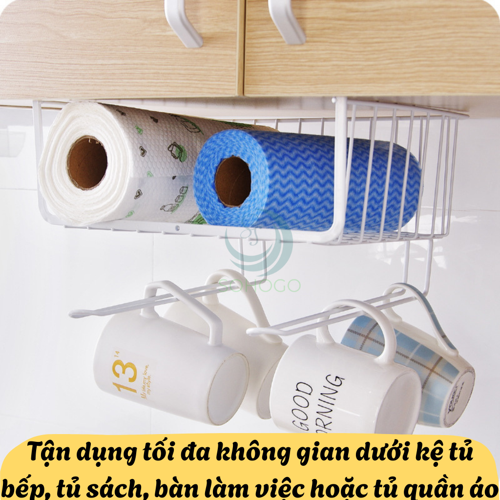 ✨Bộ 2 Giá treo giấy lau, cốc, vật dụng nhà bếp- Kệ treo dưới tủ bếp tiết kiệm không gian