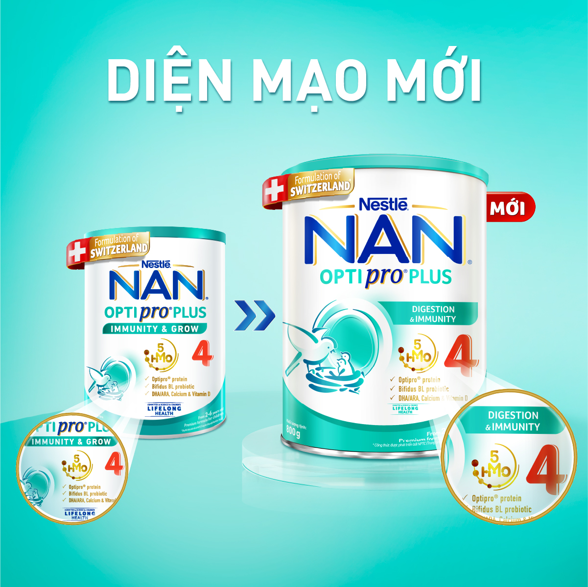 - Thấu hiểu tâm lý của mẹ luôn muốn kiếm tìm những sản phẩm tốt nhất cho con, với kinh nghiệm 155 năm trong phát triển dưỡng nhi, Nestlé cho ra đời dòng sản phẩm sữa mát Thụy Sĩ NAN OPTIPRO PLUS 4 giúp tiêu hóa tốt, từ đó tăng cường đề kháng nhờ: phức hợp 5HMO, 100 triệu lợi khuẩn Bifidus BL, đạm chất lượng Optipro, DHA/ARA, Canxi & Vitamin D. Sản phẩm với công thức mới đột phá từ Thuỵ Sĩ, nhập khẩu chính hãng bởi Nestlé Việt Nam được kiểm tra nghiêm ngặt về chất lượng và an toàn sản phẩm của Nestlé toàn cầu. Thông tin sản phẩm